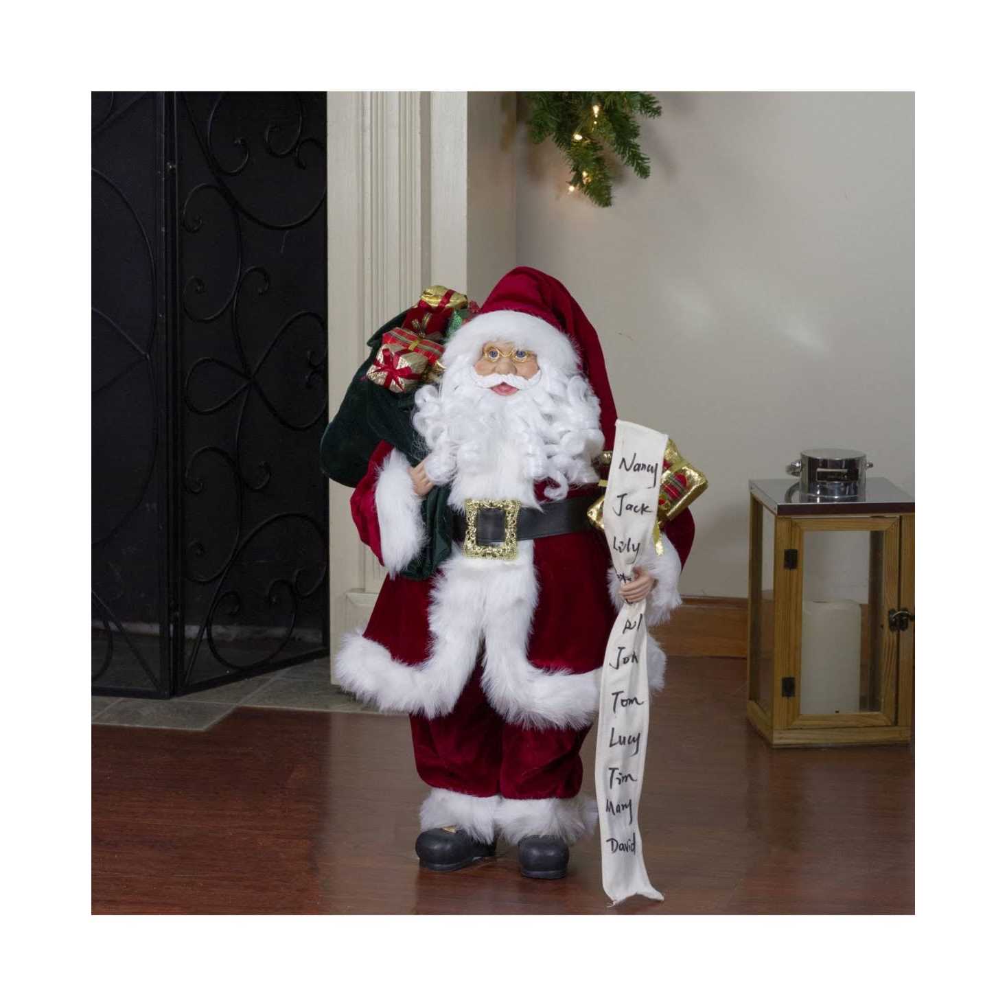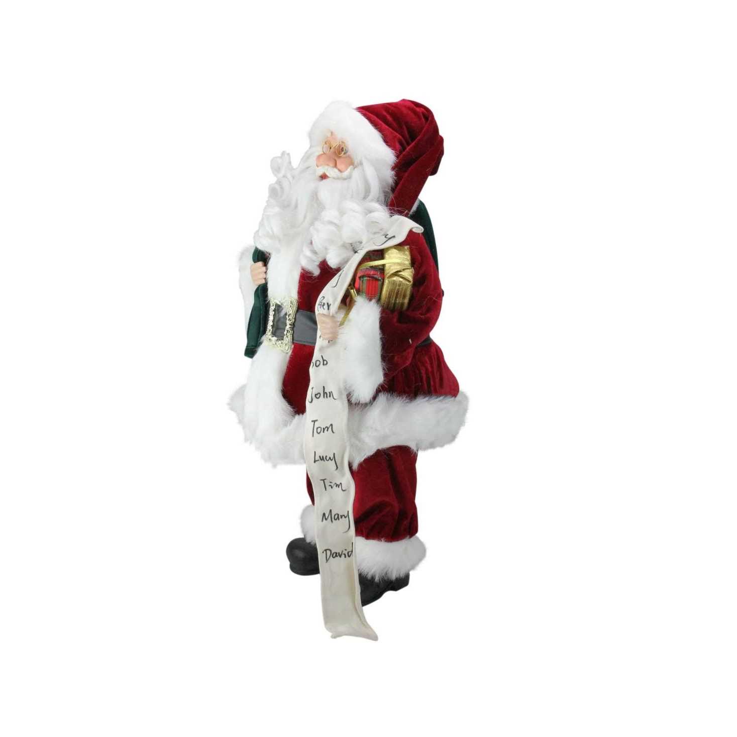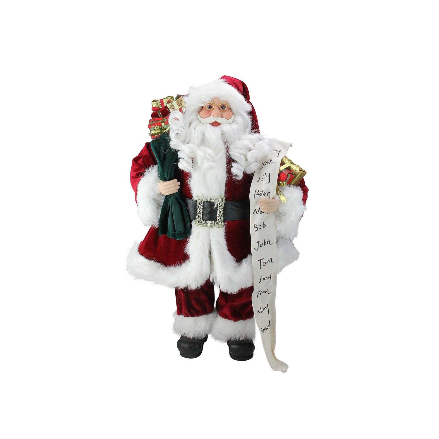 • 24″ Standing Santa Claus with Naughty or Nice List and Bag of Presents Christmas Figure