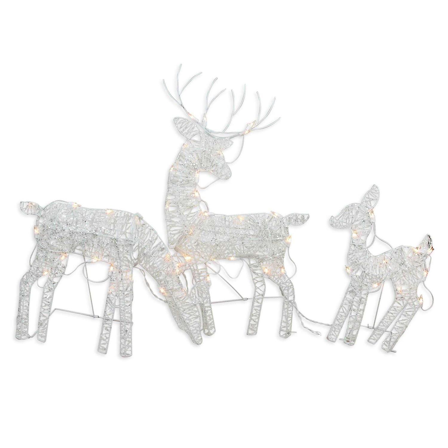 Northlight Set of 3 White Glittered Doe, Fawn and Reindeer Lighted Christmas Outdoor Decoration
