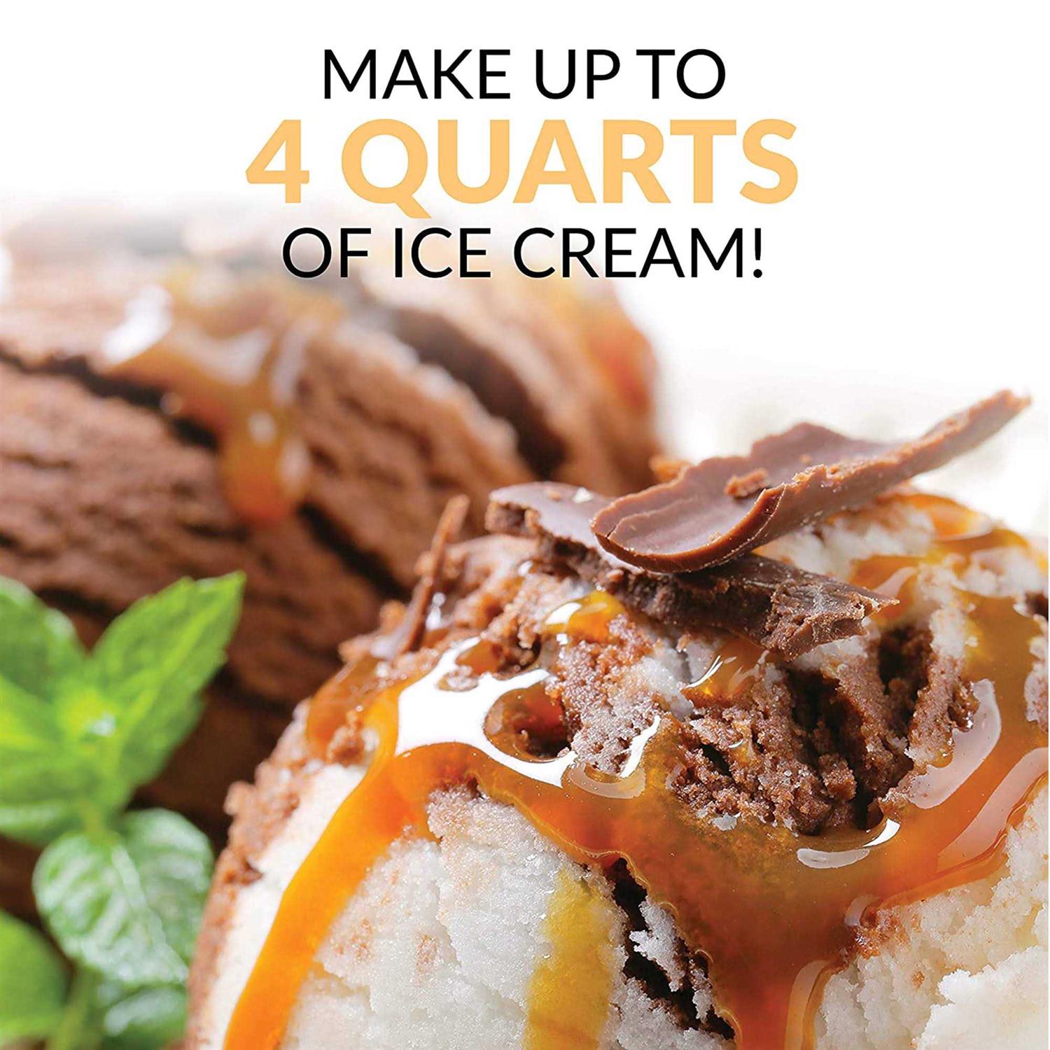 4-QUART CAPACITY: Makes up to 4-quarts of delicious ice cream, frozen yogurt or gelato