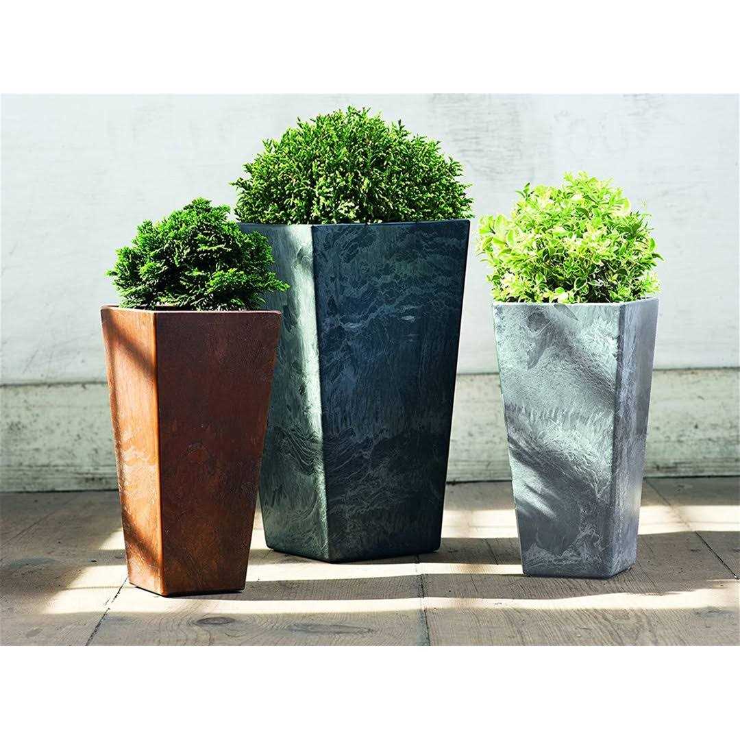 Ella planters with their squared contour bring a modish twist to the ArtStone line. By providing a bit of an edge Ella becomes the chic solution to the daunting question “What’s hot ” ArtStone is Novelty’s premier line of planting containers that represents an appealling range of styles and colors taste and budge. These high quality planters are made from a proprietary blend of resin materials with a significant amount of natural stone. Rubber removable stopper for drainage – no need to punch holes. Footed bottom allows for airflow. Lightweight and durable. Built-in unique Water-Minder reservoir; refeeds plants as needed. No need for saucer or tray. Composed of natural stone and resin. UV resistant.