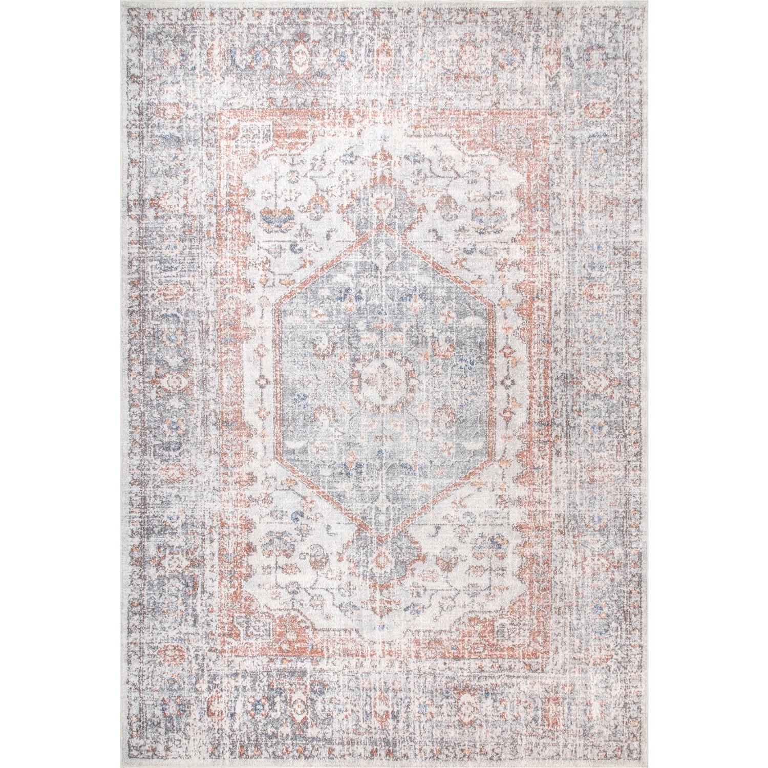 nuLOOM Jacquie Machine Washable Vintage Floral Area Rug, Grey, 2×3 ft