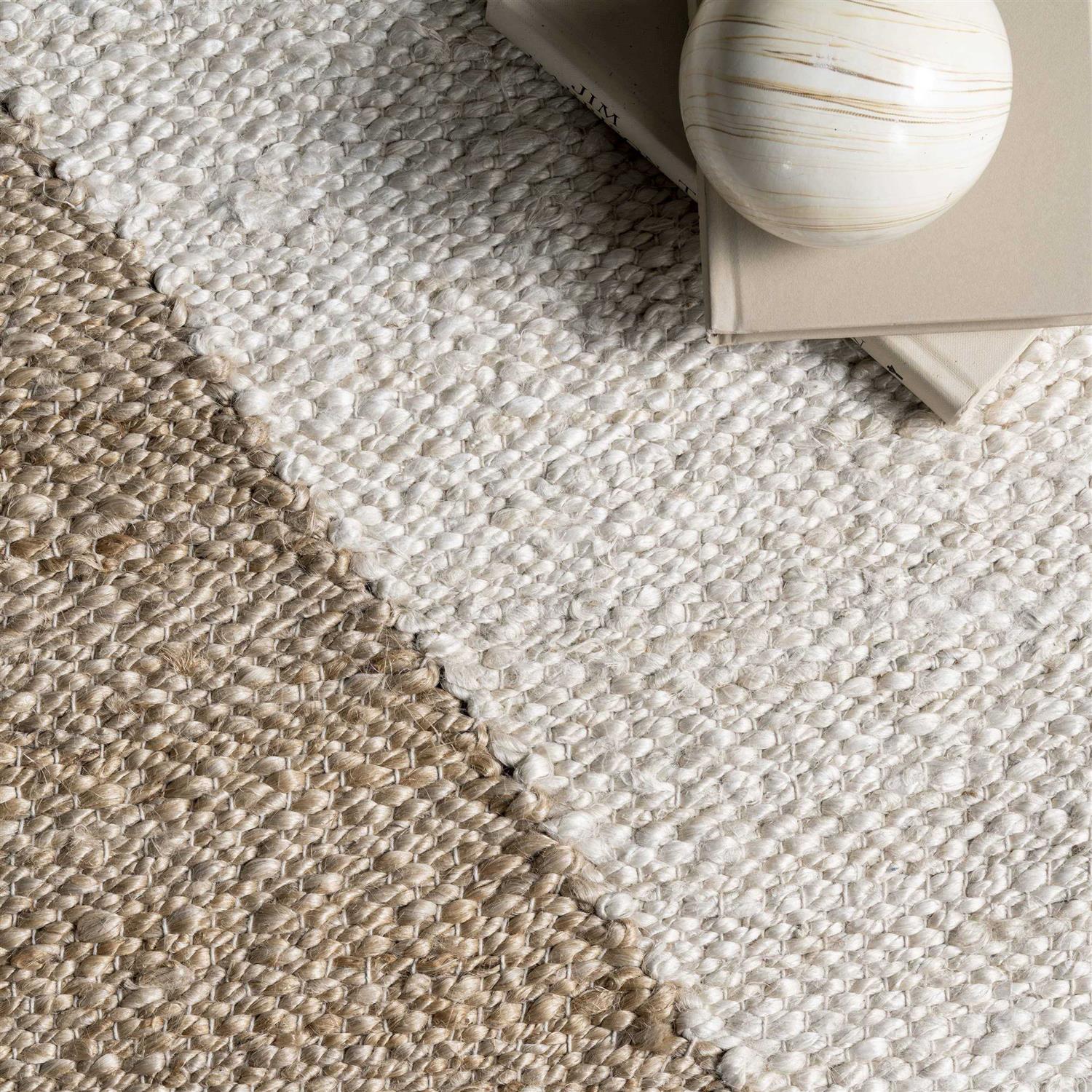 nuLOOM Pandora Diamond Jute Area Rug, 6′ Square, Ivory