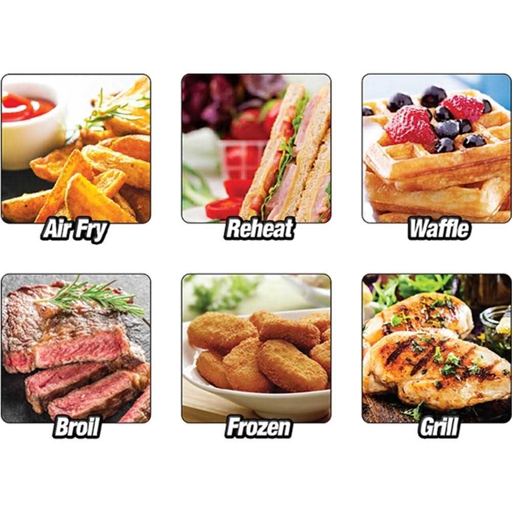 You’ll love the versatility of this powerful 1500-watt oven because it lets you air fry, bake, roast, broil, toast and even keep food warm once it’s done cooking! Generous 1 cu. ft. capacity holds a 10-lb. turkey or a 13 pizza, and 12 presets give you lots of automatic cooking options. Pre-heat, warm, stage and delay cooking features. Integrated probe for exact temperature control. Includes air fry basket, baking pan, broiler rack, temperature probe and crumb tray. 20 w x 11 1/4 h x 16 d.