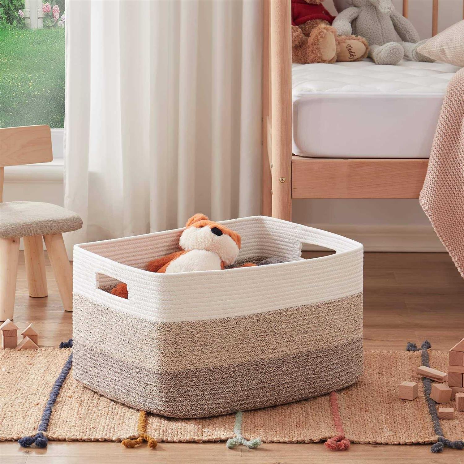 100% Cotton Rope Storage Basket:OIAHOMY woven baskets are made of 100% natural cotton, chemical and odor free, there are no sharp or hard edges to scratch floos, and safe for kids and pets. It is more durable than plastic basket. 1Decorative Blanket Storage for Living Room:This rectangular blanket basket is more stable and easier to restore its sahpe after you receive the package. The 21.7” x 16.9” x 11.8” large storage basket can also used to store blankets, pillows, cushions, toys, clothes and towels. Large Basket With Handles: This woven basket is equipped with sturdy handles, which is sewn with double reinforced threads. It can support heavy objects, or it can be dragged. It is convenient for you to take it from upstairs to the laundry room. Foldable woven baskets for storage: OIAHOMY toy storage are soft and sturdy enough, it can be folded to save space when not in use. It is widely used in bedrooms, living rooms, nurseries, laundries and bathrooms. Washable Large Basket: This large basket can be washed by hand or machine with gentle detergent. If machine washed, please put them into a laundry bag. Some storage space is designed for small objects, such as drawers and desktop organizers. Big objects also have storage needs, like baby’s clothes, blankets, toys, dirty clothes etc. Baskets are designed expressly for them. The woven basket is very soft and lightweight but strong enough to stand up by itself even when it is empty. This blanket basket can also keep your every room tidy and clean. Multiple purpose: Living room: OIAHOMY rope woven basket can be used to store the blankets, pillows, cushions, clothes and so on. Organized your living room and keep the floor and sofa tidy. Baby room: Our storage basket can work as a nursery basket in baby’s room. The nursery basket can store babay’s toys, clothes, blankets and so on. Please don’t hesitate anymore, add it to your cart and purchase it right now!