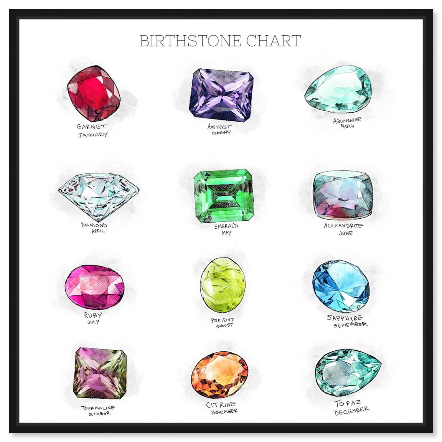 Oliver Gal ‘Birthstone Chart’ Fashion and Glam Wall Art Framed Canvas Print Jewelry