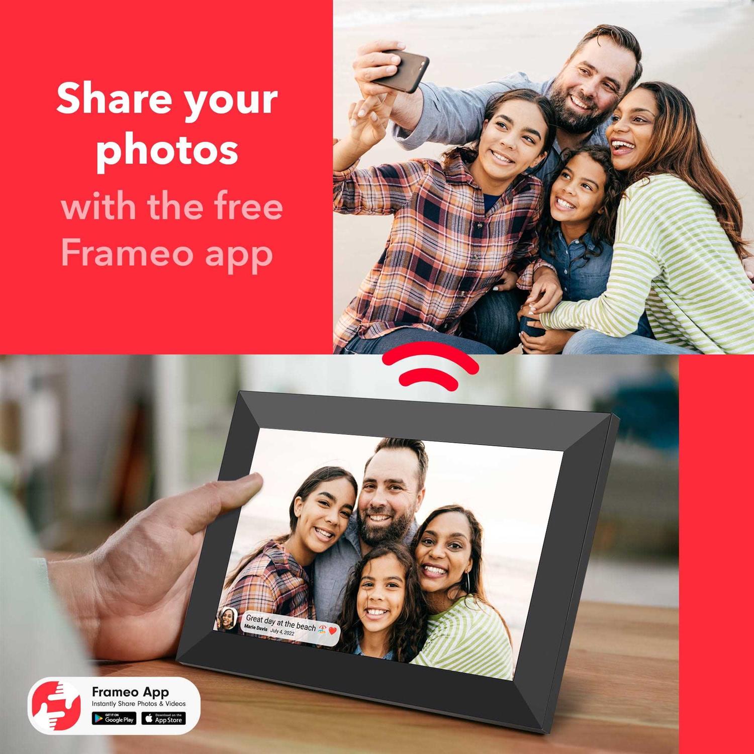 Onn Wi-Fi Digital Picture Frame Send Photos & Videos Instantly via the Free Frameo App
