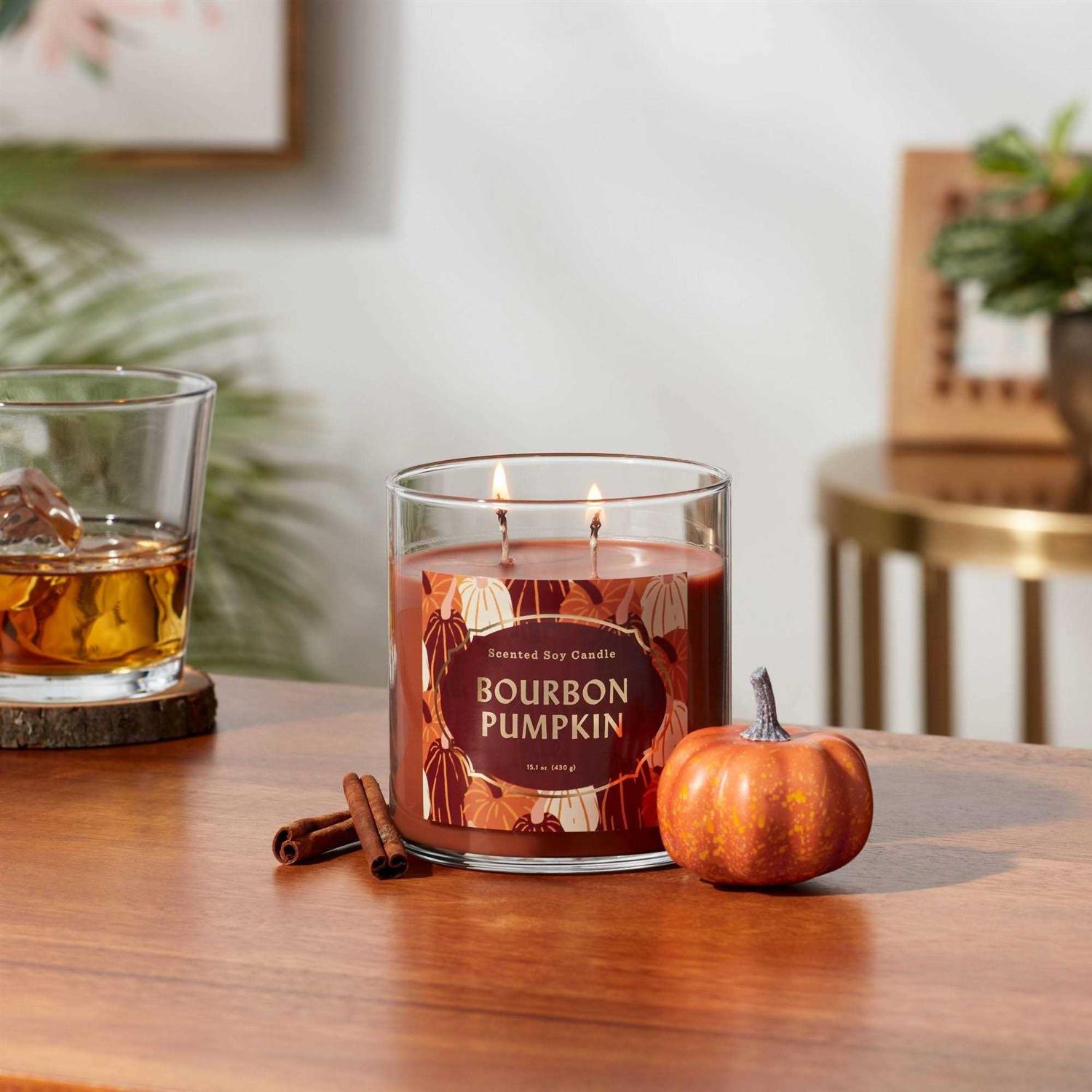 2-Wick 15.1oz Lidded Glass Jar Bourbon Pumpkin Candle – Opalhouse