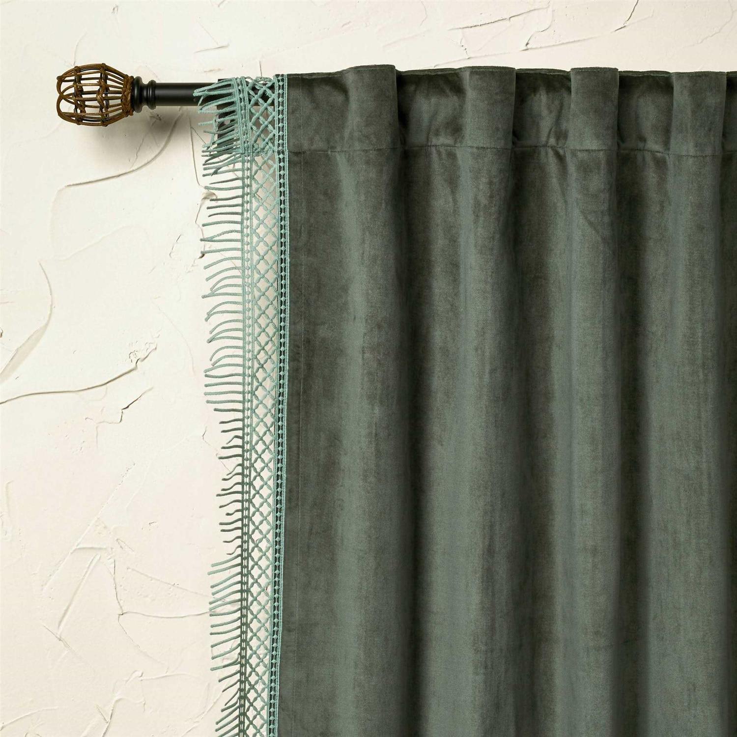 Opalhouse designed with Jungalow 1pc Light Filtering Velvet Macrame Trim Window Curtain Panel