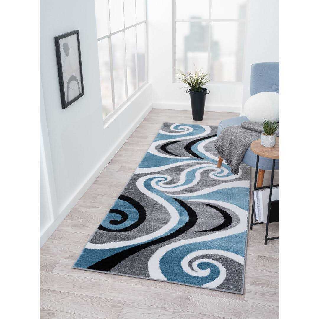 Orren Ellis Calista Swish Gray/Blue Area Rug