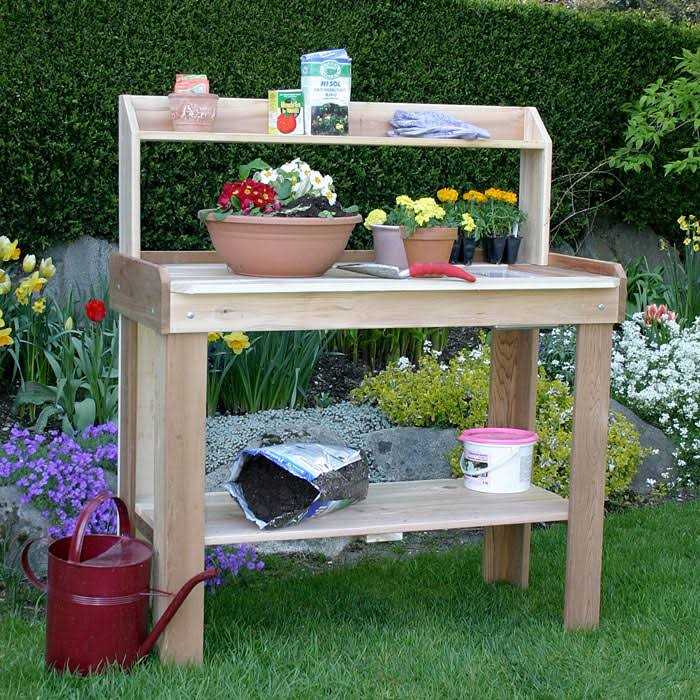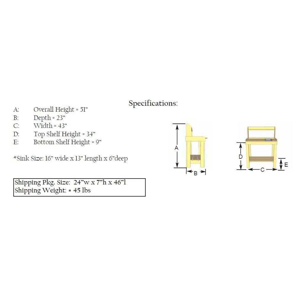 Working outdoors has never been easier or more fun than it is when you use this handy Potting Bench. The bench is sturdy, easy to assemble, and really handy. It is constructed of Western Red Cedar which is both beautiful and long-lasting. While you’re out in the garden, there is even a plastic sink attached to keep clean.There’s plenty of room, top and bottom shelving, and a place to wash up. What else do you need? Enjoy the sunshine, get out in your garden, and take advantage of a beautiful season outdoors using this convenient Potting Bench to really get your green thumb going.