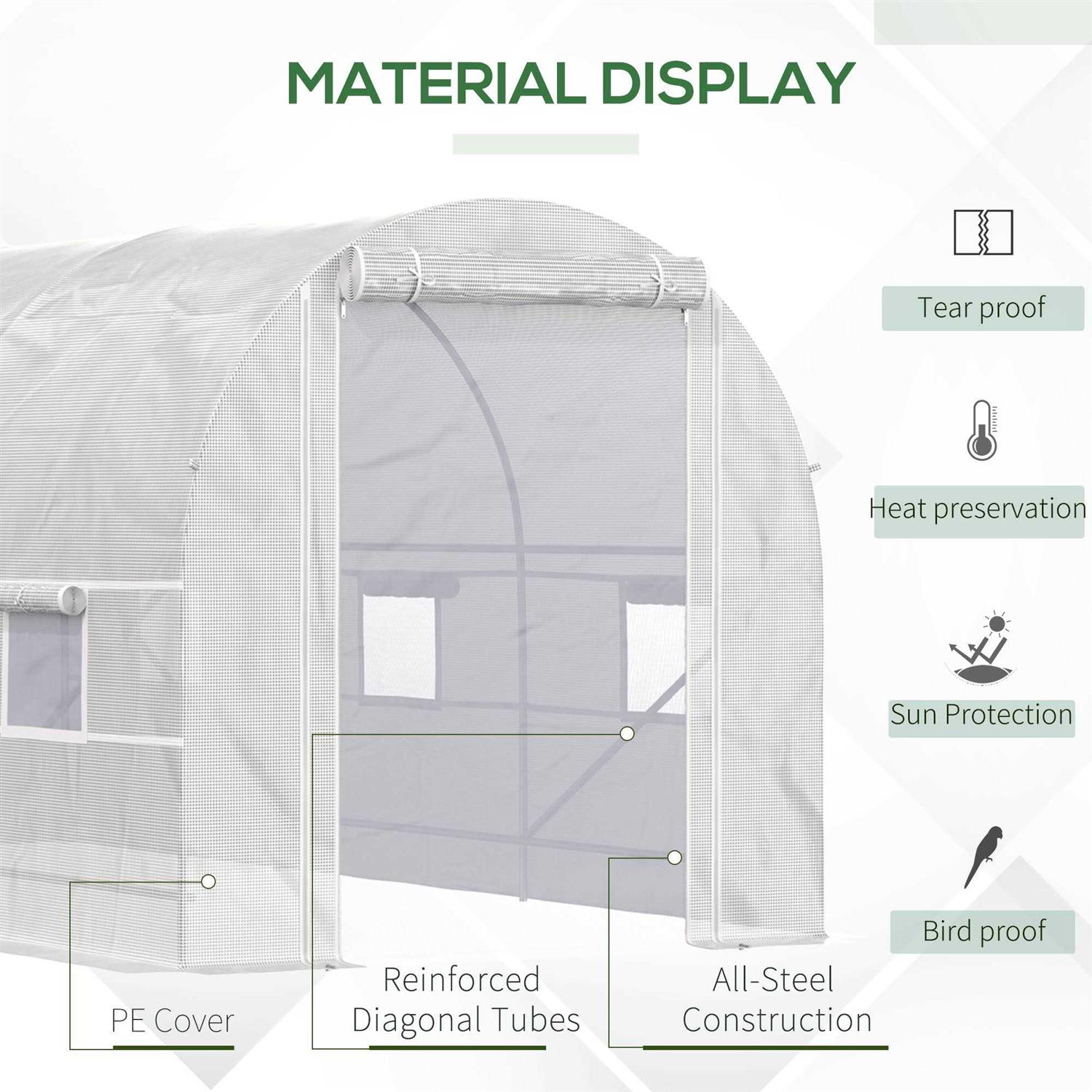 Outsunny Walk-In Tunnel Greenhouse with Roll Up Doors White 15′ x 7′ x 7′