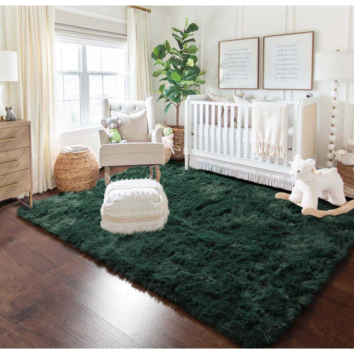 PAGISOFE Dark Green Area Rug for Bedroom, Living Room Aesthetic, Soft Shaggy Fluffy Rugs for Boys Room Kids Nursery Playroom, Plush Indoor Floor