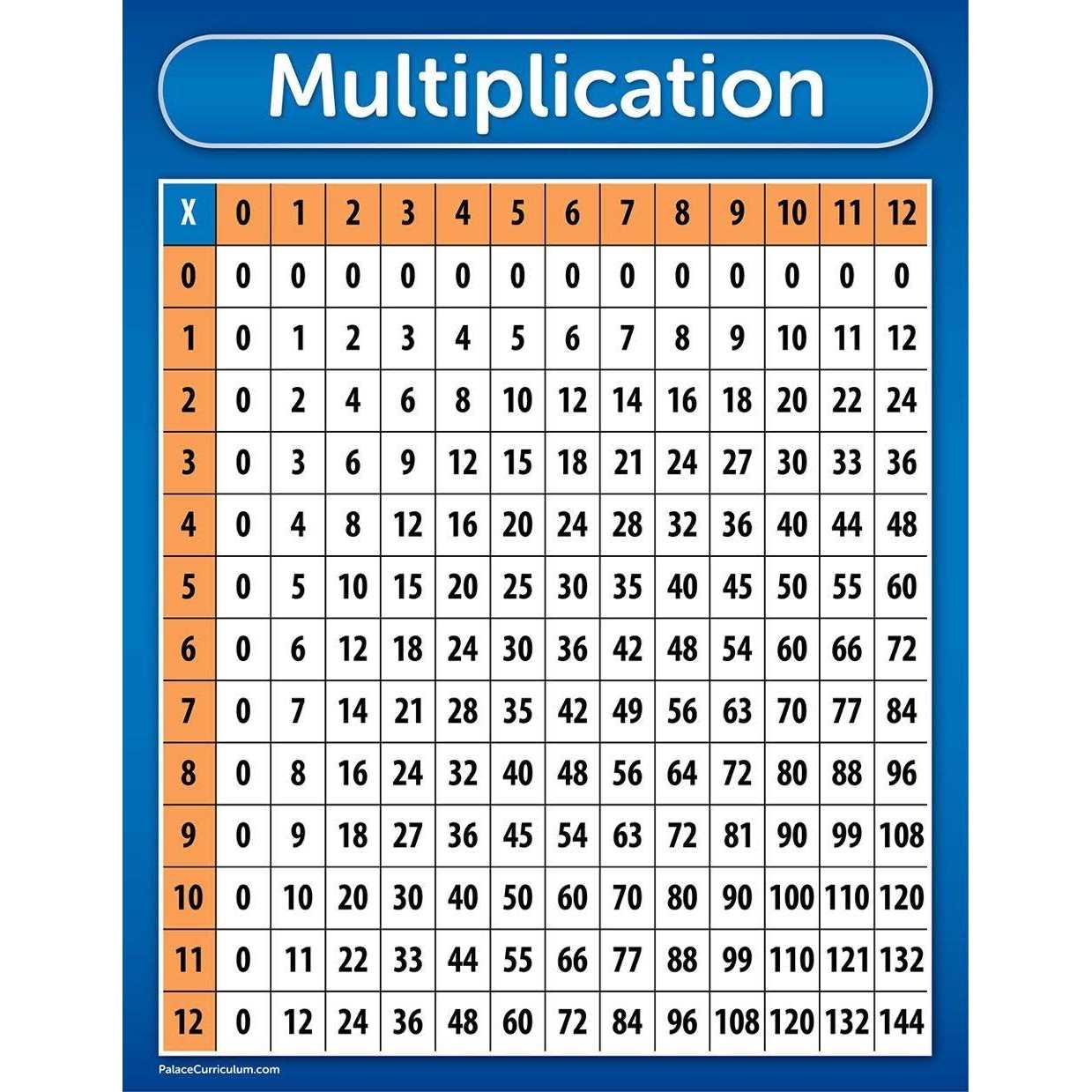 Palace Curriculum Multiplication Table Chart Poster