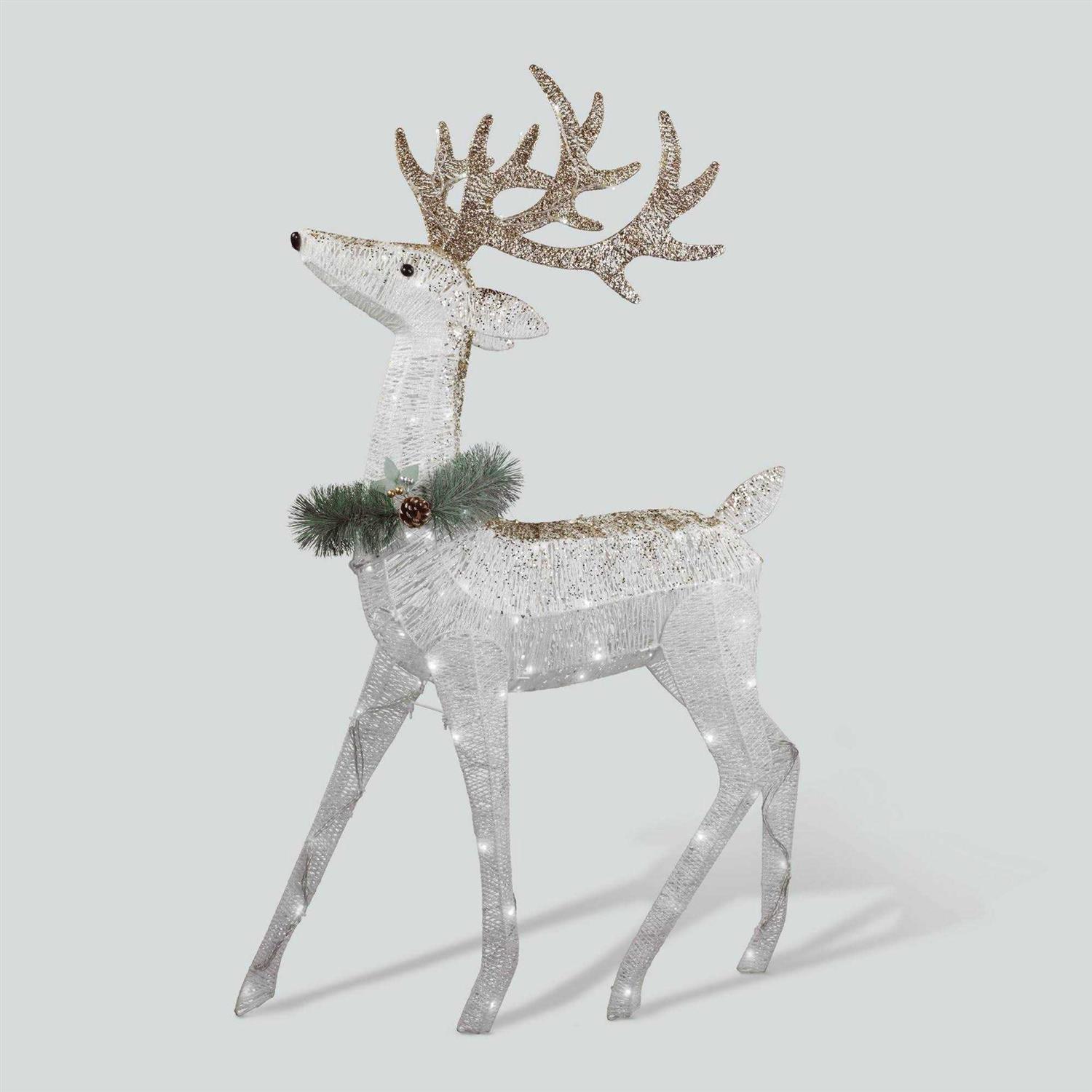 Enhance your holiday décor with this elegant Philips LED Glitter String Buck. Buck is 48″ tall with 120 pure white LED lights with twinkle effect. White and champagne glitter finish gives this buck a beautiful effect outdoors. Buck is easy to set up, and includes ground stakes. Perfect for use in your yard.