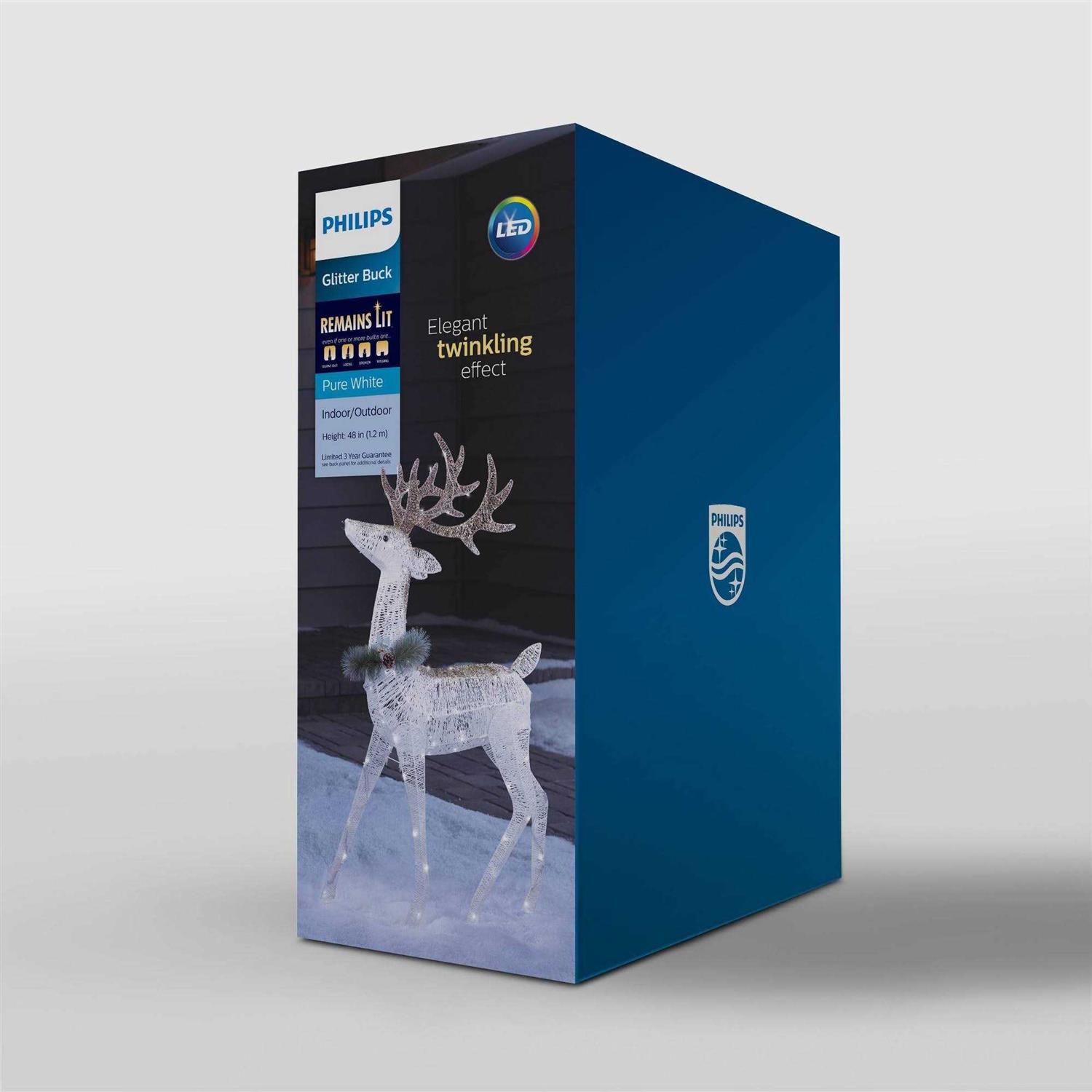 Philips 48in Glitter String Buck Christmas LED Novelty Sculpture Pure White Twin