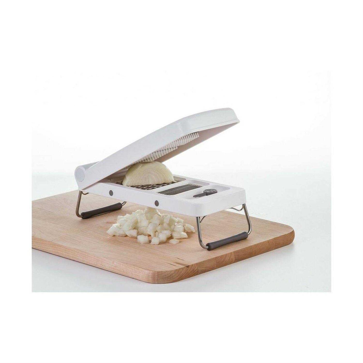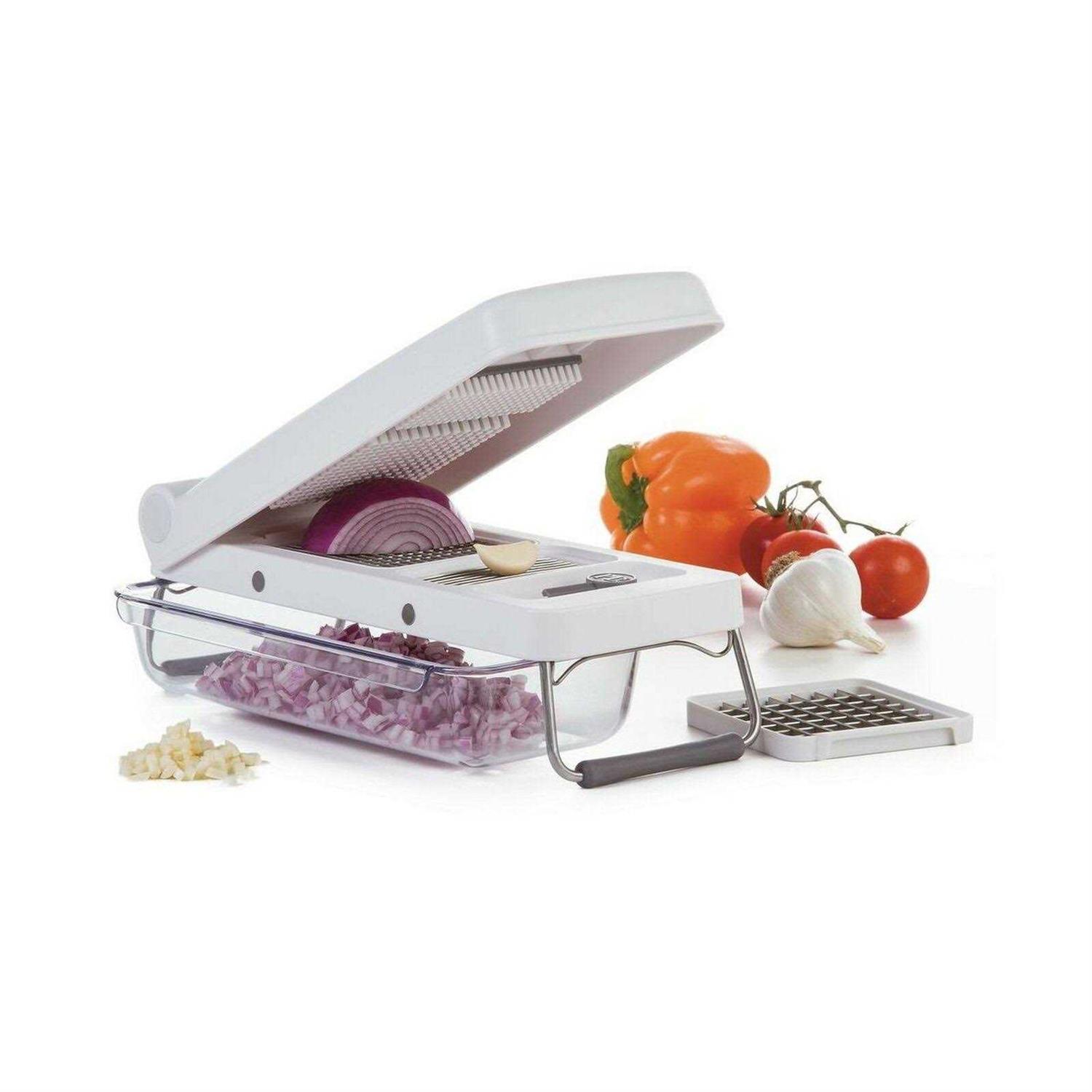 Cut, dice, slice and chop fruits and vegetables for salads, stir-fries and more with this PL8 professional chopper from Progressive International PL8-1600. The strength and chopping versatility of the PL8 chopper truly set this model above the rest. Made of stainless steel, this chopper includes three interchangeable blades — 1/8″ mince, 1/4″ dice, and 1/2″ chop. A handy bin is included with the chopper, made to slide under the piece and catch your fruit and vegetables as they fall. The bin holds a hefty three cups, so you can slice and dice away without having to worry about it overflowing. Dishwasher safe, this chopper makes clean up a breeze.