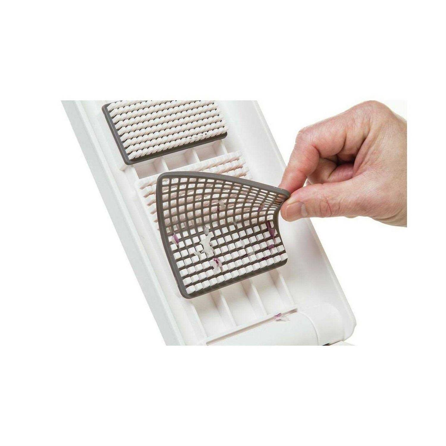 - Integrated cleaning grill and tool to remove excess food from the laminas and lid
