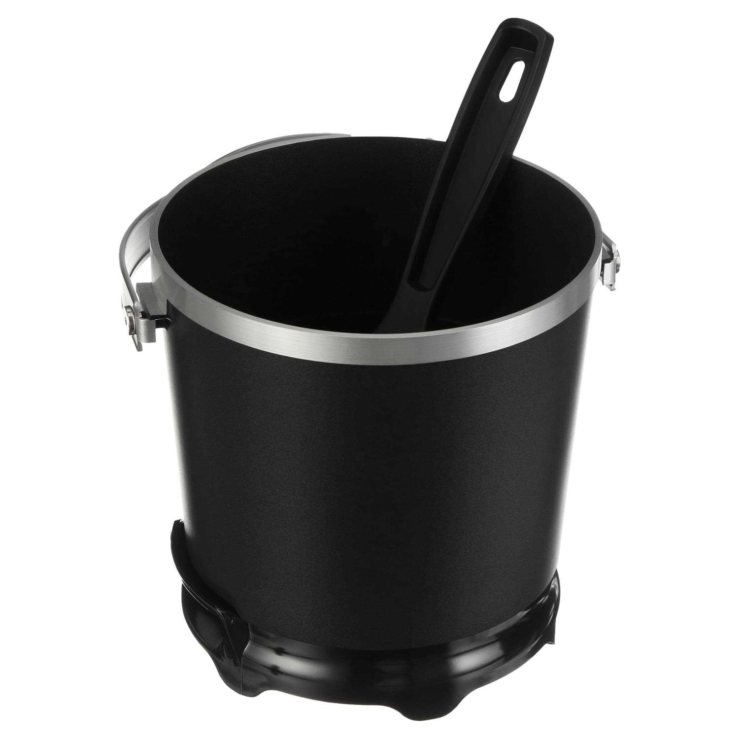 - Handy scoop lifts, drains, and serves