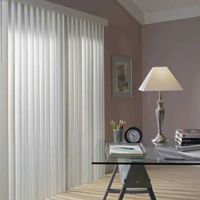 Project Source 3.5-in cordless white vinyl light filtering vertical blinds give your windows a stylish, modern look.