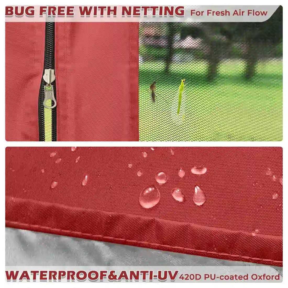 - FRONT & BACK ENTRANCES]: The screen house includes front and back doors with zippers for easy entrancing/exiting.