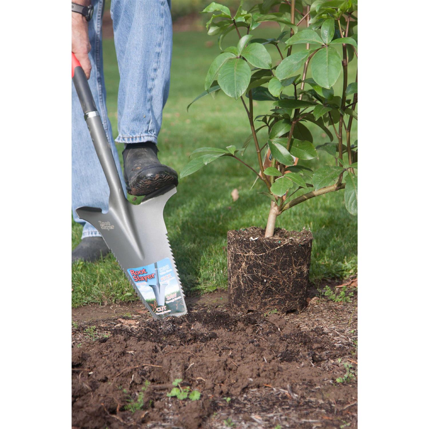 Serrated shovel designed for reducing stress on your hands and wrist! Key Product Features Digging shovel with V-shaped cutting tip to easily rip roots and dirt Garden digging shovel with durable powder-coated carbon steel tip Sturdy tip suitable for any garden task- not meant for prying Lifetime manufacturer (continental US only) Strong and durable powder coated carbon steel blade that cuts deeper and makes it easier to scrape out weeds and their roots Colored Red and black 45 x 10.5 x 3.8 in dimension The right tool can relieve or prevent arm, hand and wrist fatigue Gardening doesn’t have to be difficult. Gardening injuries can happen. But you can prevent it by using the right tools fit for the job. This transplanting spade combines several tools in one so you don’t have to change tools in the middle of your gardening. You can now do more in your green garden since this garden shovel with teeth gives you comfort and convenience. The blade of this root slayer is made of durable carbon steel that is shock, scratch, and impact-resistant. This blade powder-coated to protect it from corrosion due to the different soil conditions in the outdoors. It requires minimal maintenance because it only needs to be wiped clean after each use. You can expect long-lasting and reliable performance from this root slayer since its powder-coated carbon steel blade will not chip, crack, peel or corrode.