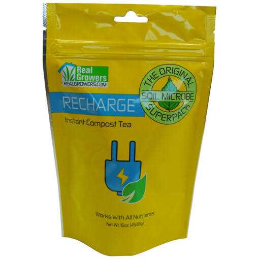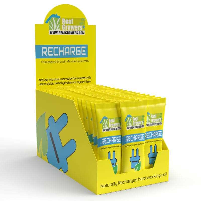 Recharge is a mix-and-pour soil microbe superpack. It works like an instant compost tea. The soil microbes in Recharge go out and grab the nutrients in your soil, help break them down, and bring them back to your plant’s root zone. Additional expected benefits include: faster growing, more resilient plants, less wasted nutrients, lowered risk of pH lockout, and lowered risk of nutrient burn. Real Growers Recharge is the most trusted name in soil microbes.