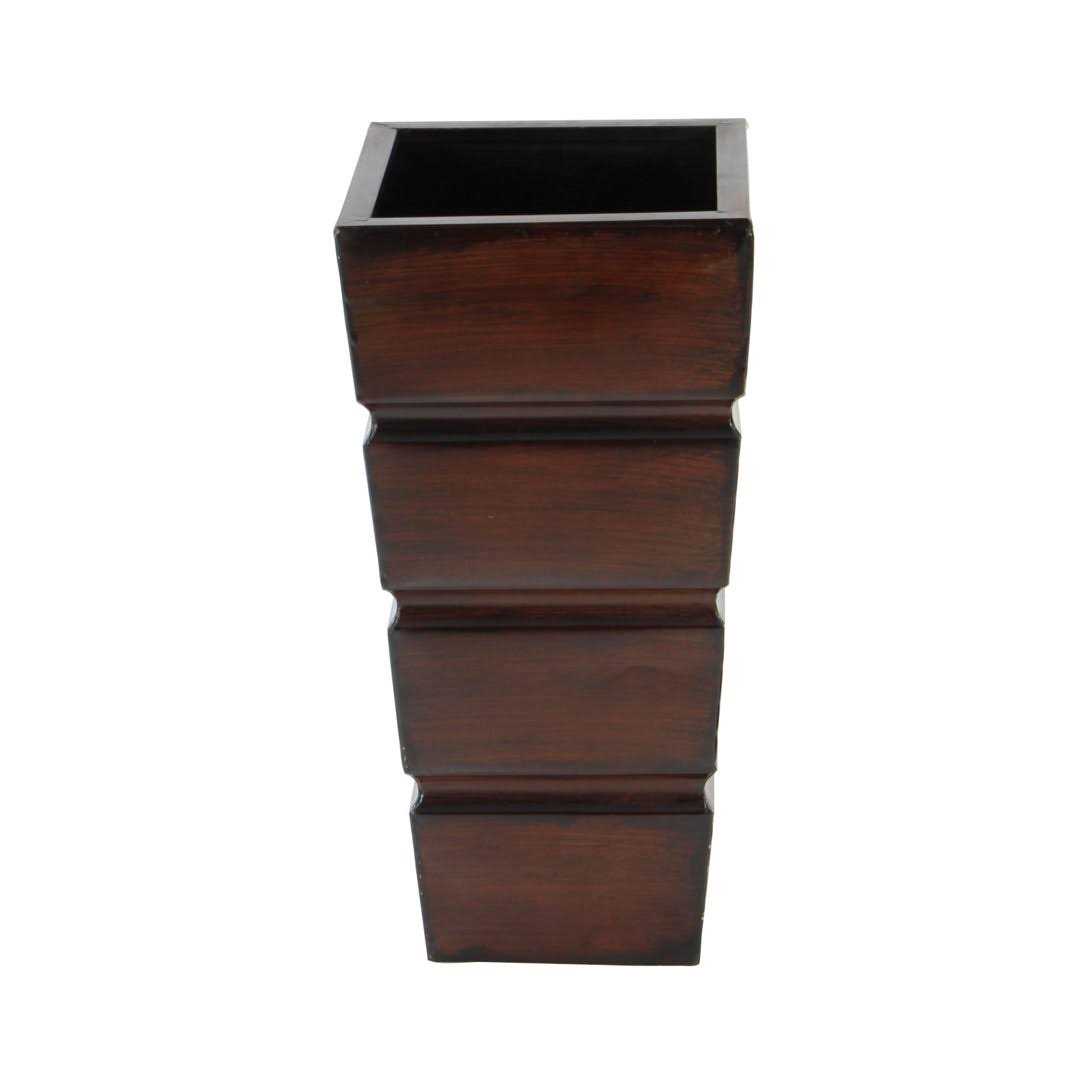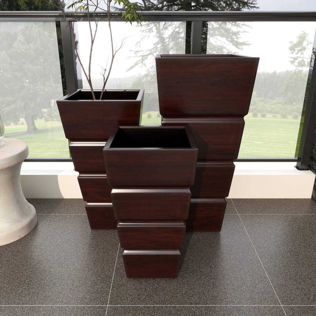 These floor planters were crafted with wide receptacles and deep settings that are meant to stylishly display herbs, shrubs, indoor plants, or cacti. Please note that this item is for decorative purposes only and is not food safe. Suitable for indoor and outdoor use. The maximum weight limit is 20 lbs. Planters do not have drainage holes but they are not watertight. Rustic style.