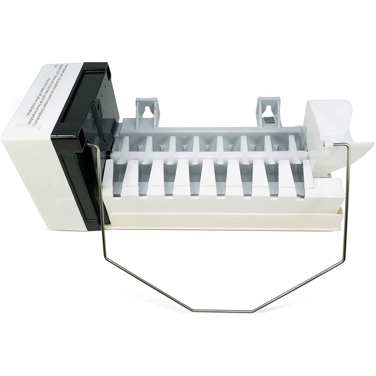 Replacement ice maker used for some Amana, Dacor, Ikea, Jenn-Air, Kenmore, KitchenAid, Maytag refrigerator models. Directly Replaces: W10884390, W10469286, WPW10377152, W10377152, WPW10469286, W10793298, RIM9286, 4454927, AP6030643, EAP11765620, PD00031918, PS11765620. Features: Creates ice cubes to be stored in the ice bin. Typically used on bottom mount units. Includes (1) 8-Cube Ice Maker with Air Diffuser, Bail Arm, and 4-Wire Harness. Specifications: Color: White / Black / Gray. Material: Plastic / Metal. Finish: Satin. Electrical Specs: 115V, 60Hz, 260W, 2.2A. Dimensions: 12″L x 5-1/2″W x 4-3/4″H. Additional Dimensions: 4-wire harness extends approx. 17″ from ice maker.