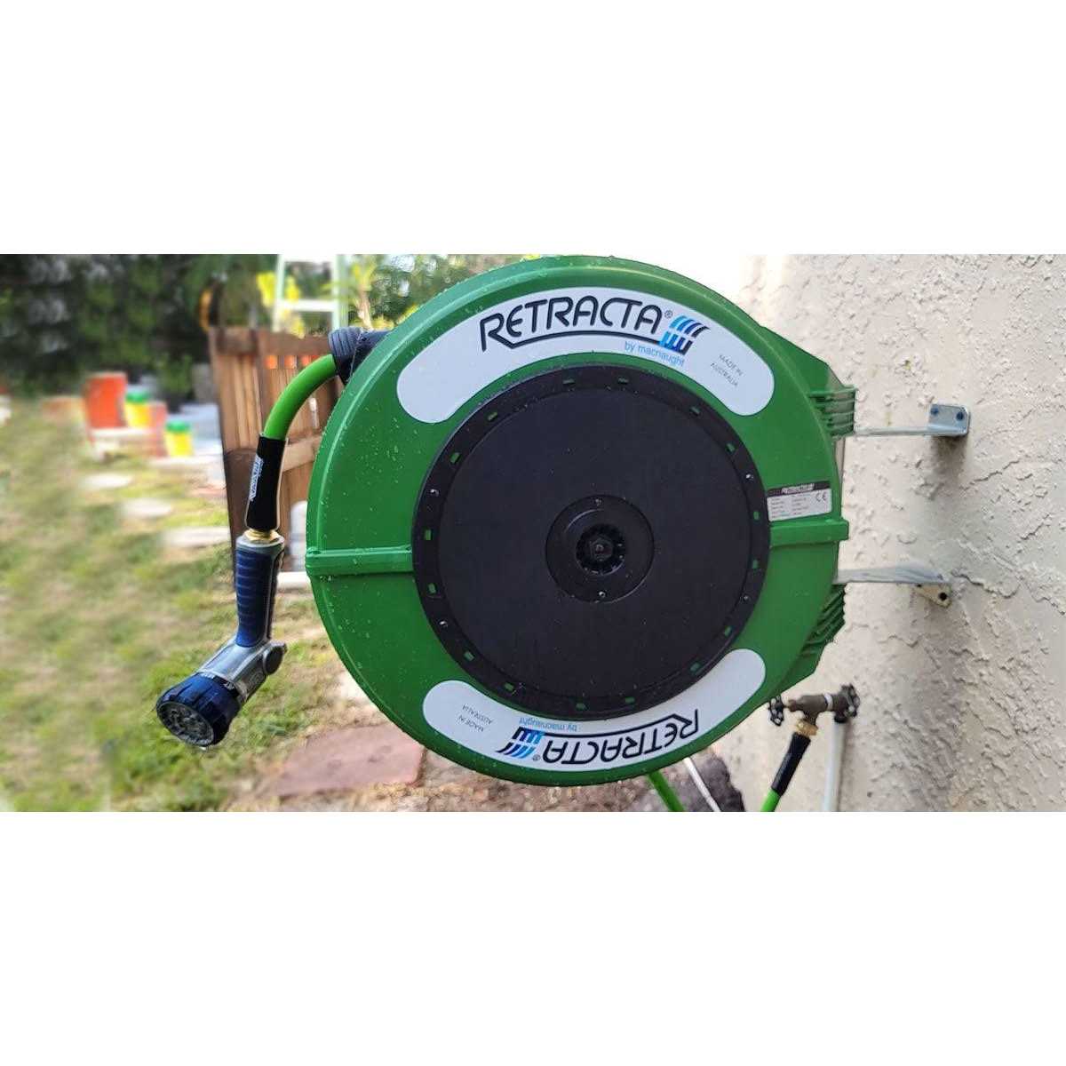 Brand: Macnaught Features: Industrial-Design, Professional-Grade, Great Look! [STABLE AUTO REWIND SYSTEM] Give the hose a gentle tug, the hose reel will retract automatically back in. No memory, Eliminates Kinking, Heavy Duty & Lightweight [HIGH-GRADE GARDEN HOSE] Primary Hose: 82ft Retracta Flex Premium Water Hose x 60 – Hose features Innovative Hybrid Polymer Material, No memory, Eliminates Kinking, Heavy Duty & Lightweight RETRACTA Flex green feeder hose: 1/2x 6.5 included [EASILY ASSEMBLE & DISASSEMBLE] Assemble the hose reel on the wall with the 90-degree rotation bracket. With the quick-release system, you can also easily lift to remove the reel for storage. Heavy Duty Wall/Ceiling Mount included (mounting screws not included) Details: Macnaught Retracta R3 – 82ft Garden Reel the first Australian Industrial designed Garden Reel built for the consumer market. Engineered and built in Australia. Stocked and sold via Macnaught USA. LEGENDARY AUSTRALIAN BRAND – now available in USA! EAN: 9317147751940 Package Dimensions: 22.2 x 20.3 x 10.0 inches