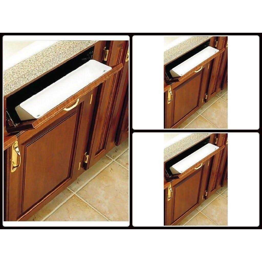 White finish Rev-A-Shelf 6581 sink front – 11″ standard tray (tray only) Perfect for kitchen or bathroom installations Hinges sold separately This tip-out tray facilitates access to your kitchen accessories. In terms of drawer organization, it is a must in any kitchen .