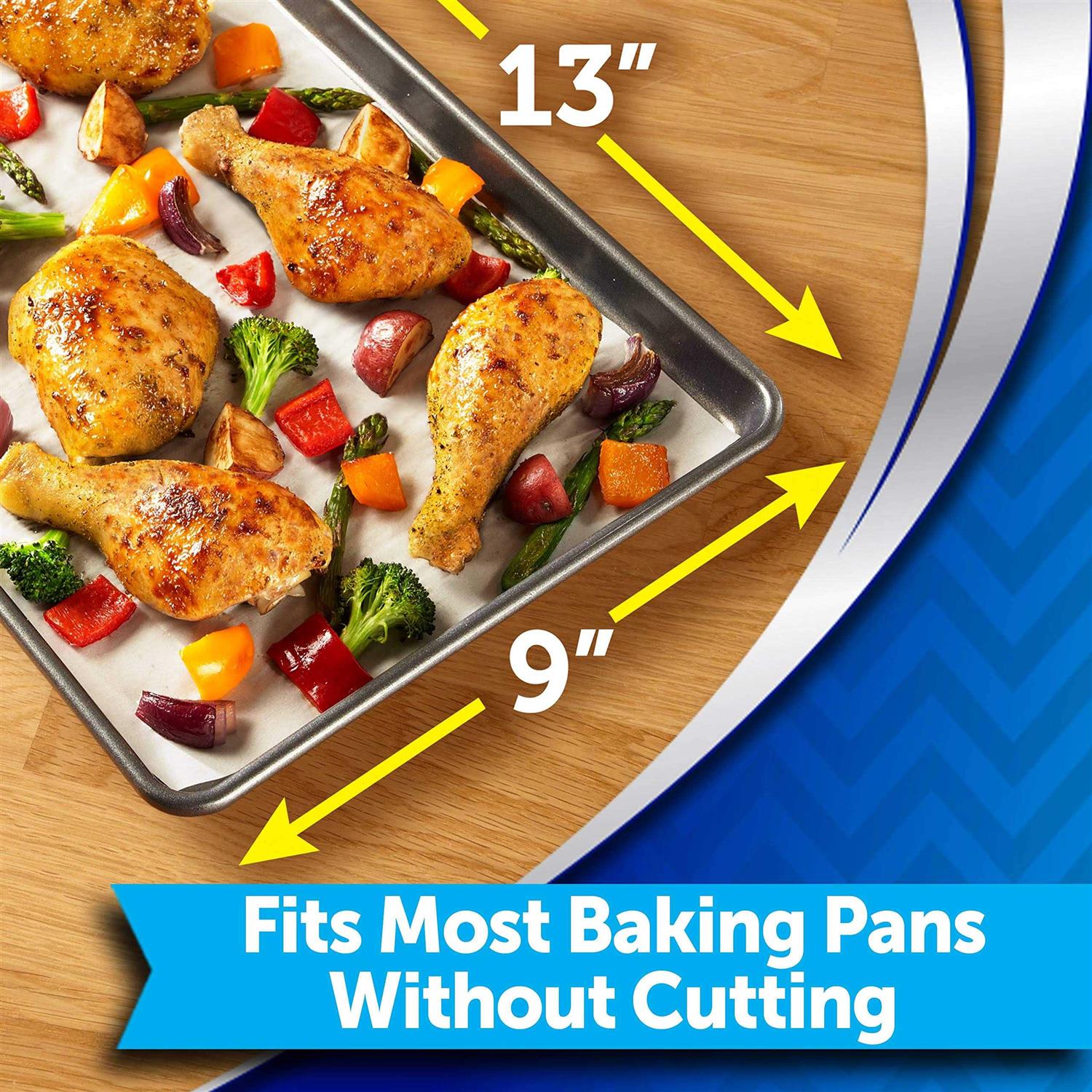 • Parchment sheets lay flat and fit pans better for everyday meals like baked chicken, vegetables, pizza, bacon, and many more