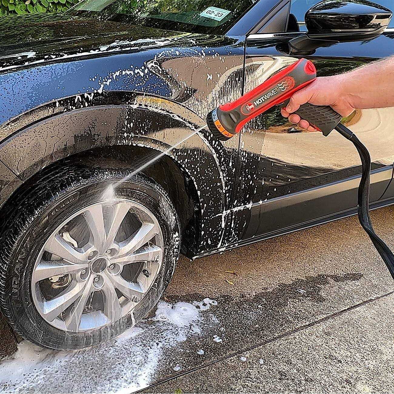 Nozzles & Hose Attachments by Rheem. Details:Rheem HotWave, the multipurpose hose sprayer that never runs out of heated water. Heated water outdoors whenever and wherever you need it! Safe and easy to use, HotWave gives you complete control of water temperature, pressure and the water stream, so you can use it on anything from tough jobs like cleaning your patio, to more gentle jobs like washing your dog!