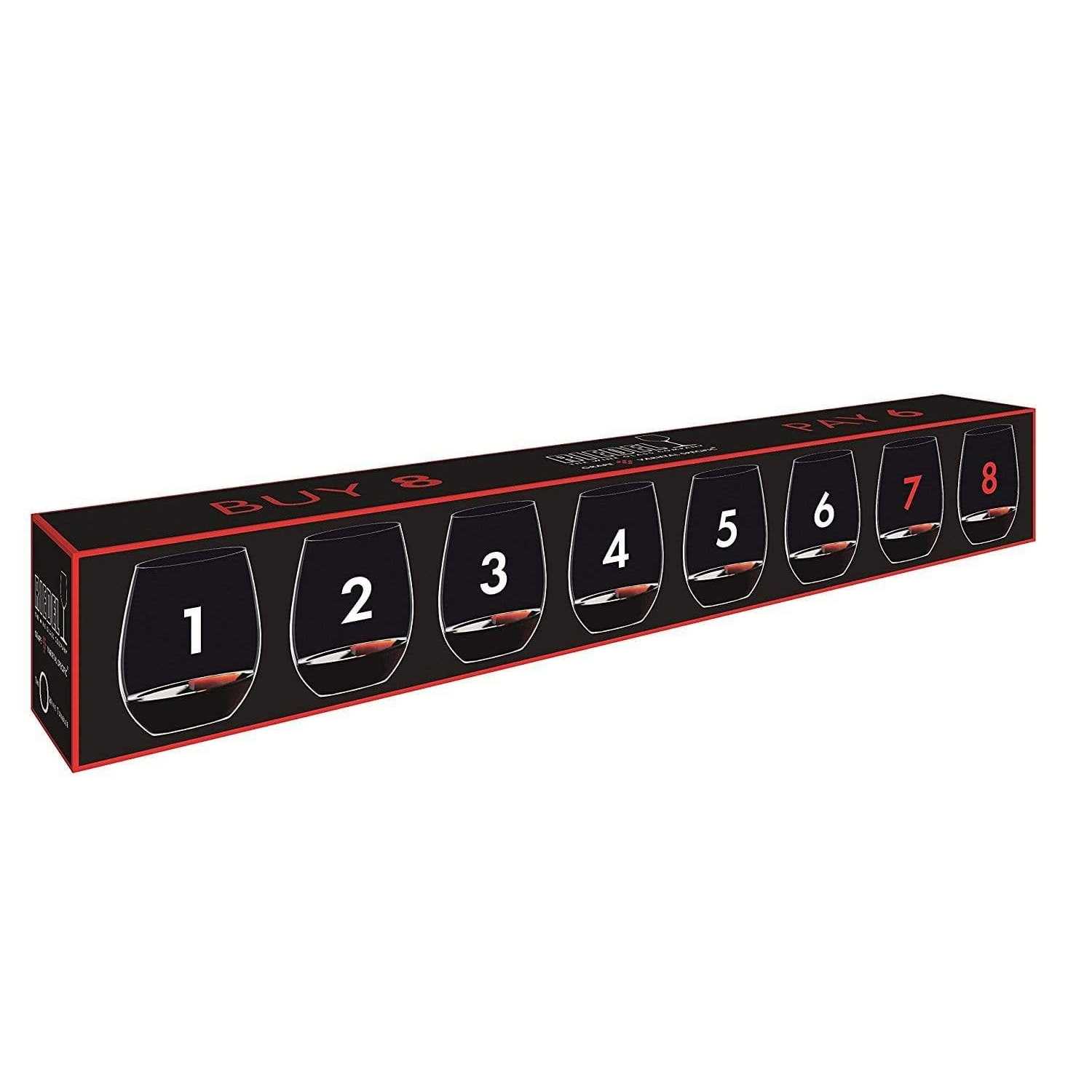 Is this a bargain, or what. This new freebee pack gets you eight ( yes, 8!) Riedel O Cabernet stemless tumblers for the price of six! Designed by 11th generation, Maximilian Riedel, these Riedel O Cabernet/Merlot tumblers are reminiscent of the Vinum bowls, only without the stem. Trendy and sophisticated, these tumblers will perform much like Riedel’s preceding wineglass creations, but will also fit easily into the dishwasher or cupboard without the worries of breaking the stem. For those who would like to experience the concept of matching the shape of the glass to the grape without the traditional stemmed glass, these Riedel O wine tumblers are the answer!