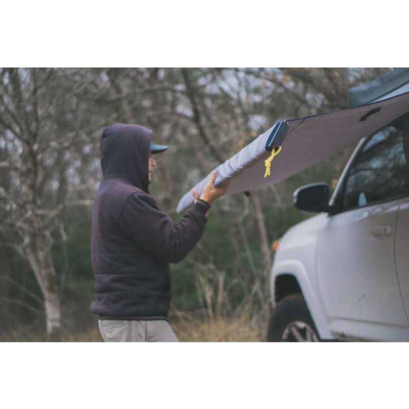 Please note that the photos used are for representative purposes, final products may vary by selection. Available in multiple widths, this easy-up awning offers plenty of relief from sweltering Texas sun. Made from durable 280g poly/cotton rip-stop canvas with a weather-proof PVC cover, it will hold up through all of your adventures. Makes a perfect partner for your Vagabond rooftop tent. Easily mounts to any roof rack or cross bars with included hardware and brackets.