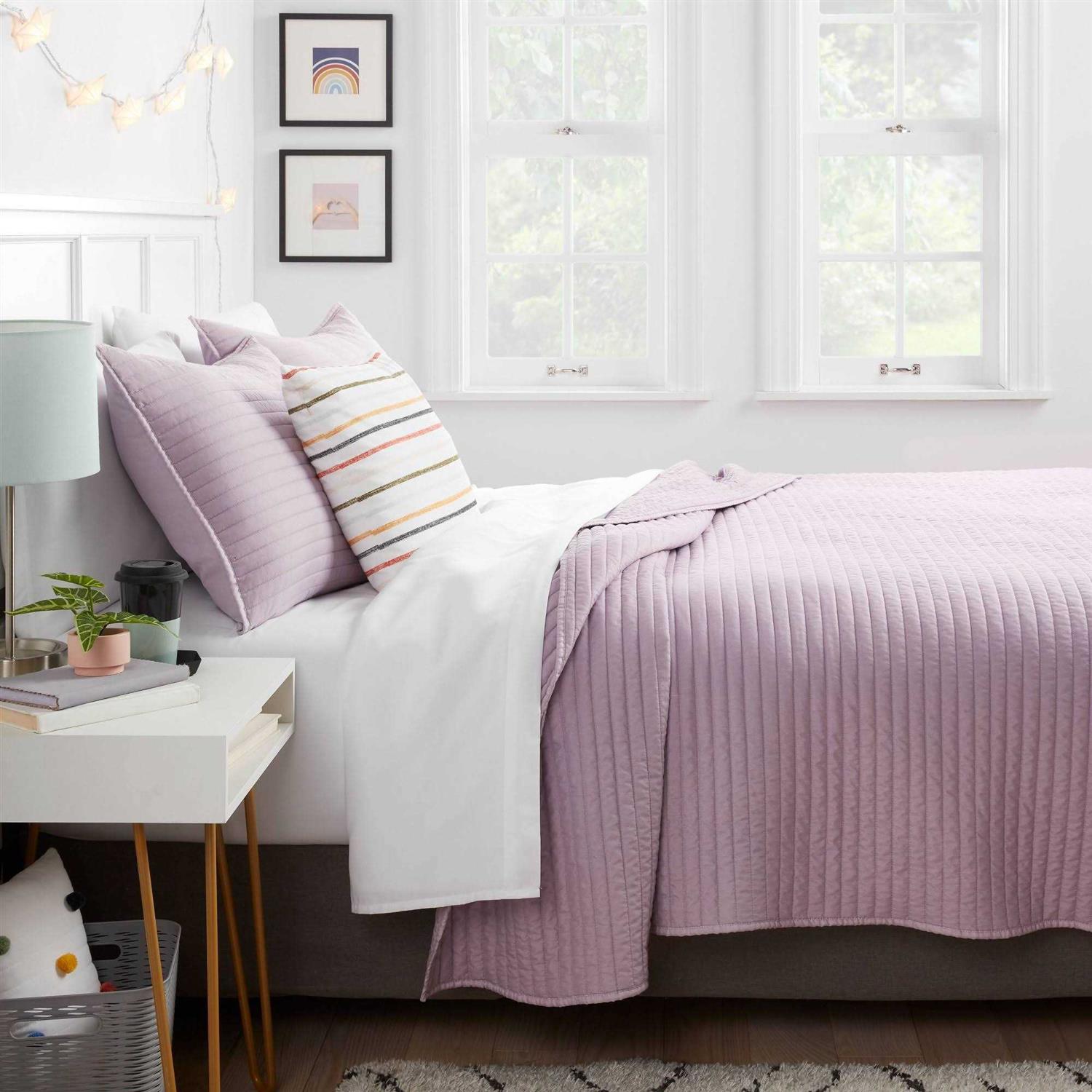 Bring modern style to your bed with this Garment Washed Microfiber Quilt from Room Essentials . This microfiber bedding quilt makes a great choice for year-round comfort. It features a stitched striped design for contemporary texture, and a solid color to match any aesthetic. The lightly quilted construction offers a soft and cozy touch to your sleep space. Use it as a quilt or as a coverlet on the top of your bed, and for easy upkeep, simply throw in the washing machine. This product is STANDARD 100 by OEKO-TEX certified, meaning that everything from the dyes and fabrics to accessories like buttons and zippers are tested and verified as free from harmful levels of more than 300 substances.