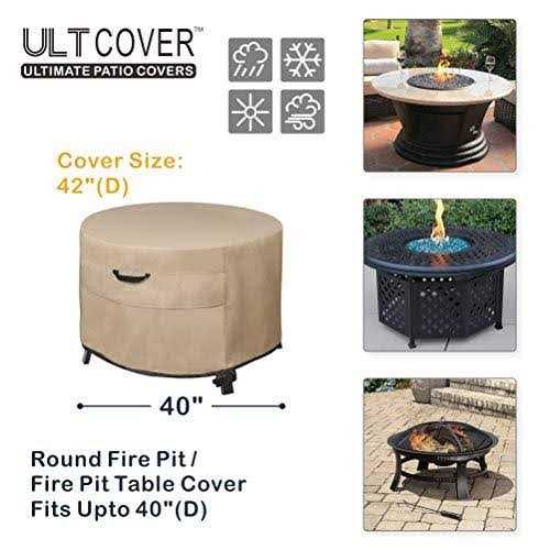 ULTCOVER Patio Fire Pit Table Cover Round 40 inch Outdoor Waterproof Fire Bowl Cover