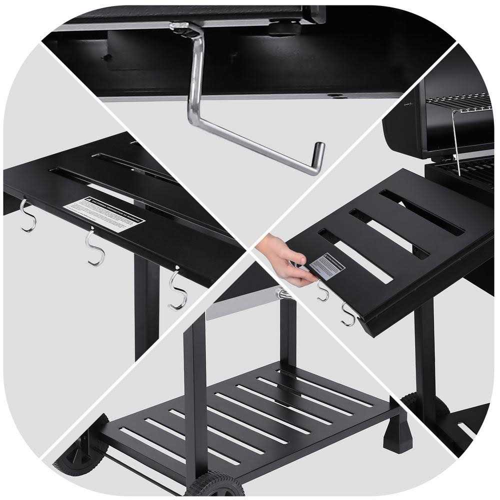 You are invited to our grill party as the best cooking star with our Royal Gourmet Deluxe 30-inch Charcoal Grill. This charcoal grill boasts ample space to grill anything on the spacious cooking area. With the lid thermometer to monitor temperature fluctuation in real-time, smoky flavor and beautiful charred surfaces from hot grill grates are hallmarks of your grilling techniques. Grilling accessories are perfectly organized on two side tables and bottom shelf, you can take it easy and cook like a pro with all utensils within arms’ reach. Propose a toast with your friends and family and start to taste the well-cooked food you provided!
