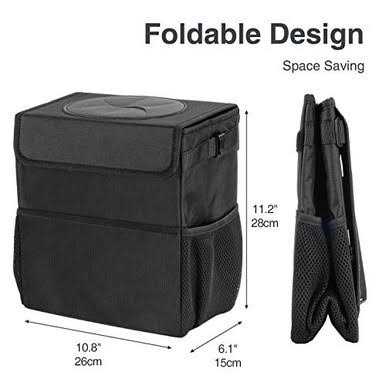 Large Capacity and Foldable – Our car trash bag measures L10.8″ x H11.2″x W6.1″. It can hold up about 3 Gallon/12L capacity for space saving. When not in use, you can fold it for room saving. Keep Clean and Tidy – Comes with rubber opening soft lid and velcro seal, which is closeable and soft that you can load tissues, fruit skin, bottles without lifting the lid even conceal waste and keep odor inside. Put an disposable bag inside and use two side clips to hold the handles of bag, just keep everything clean. Durable Waterproof Lining – The interior of the car trash bin is a durable leak proof liner to keep liquid from getting dirty. It also can be a travel cooler that holds ice to keep drinks cool for hours. Build-in cardboard on both front and back side for structure support which makes the bag stand by itself. Multi-Function Car Accessories: The car garbage can attaches with two side mesh pockets and front pocket. Whick means this can be more than a car trash can for garbage, a small cooler for drinks, it’s also a car organizer can be used for storage small stuffs such as tissue, toys, bags, snacks, umbrella, etc… Fits Anywhere in Car – Two adjustable straps with buckle for hanging to either front or back of the seat, center console, glove box even gear stick. The elastic strap with hook guarantees no spills, and lets the bag stay in place. Specifications: Open Size: Approx. L10.8″ x H11.2″x W6.1″ Folding Size: Approx. L10.8″ x H11.2″x W1.6″ Outer Material: Nylon Inner Material: Waterproof vinyl Package Included: 1 x Waterproof Car Trash Can Detail Productions: 1. Heavy duty material, washable, durable to use 2. Adjustable strap with lock buckle for hanging on the headrest/center console 3. Hoop loop design, easy to open. Keep kinds of small rubbish and things inside. 4. Two side clips to hold the and replace disposable plastic bags easily . 5. Front pocket, side pockets can be loaded with mobile phones, cards, wallets, small objects,etc… 6. Foldable design for saving more space when not in use 7. The elastic strap can attach to the bottom of car seat with hook to keep the bag from moving. Multifunctional and Practical: 1: Use as storage bags for small stuff, make your car no more clutter; 2: Use as cooler bags, frozen beer or food when you go out travelling; 3: Use as a grocery bags to collect the household item; 4: Use as a car trash can, collect the trash of your car, make it look neat and tidy Accessories ONLY,device NOT included