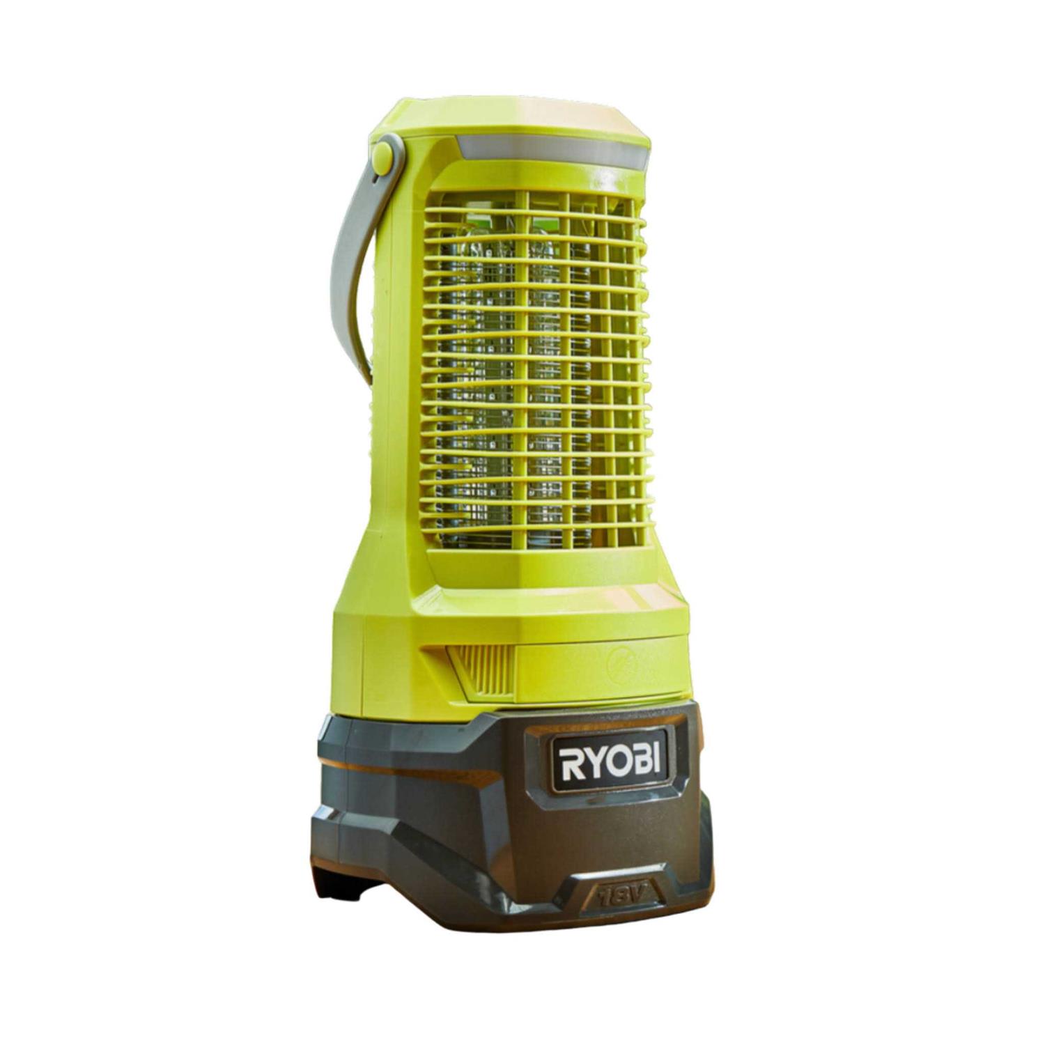 Internal UV tube light to attract bugs to tool External LED lights to light nearby area Removable disposal tray to easily dispose of bugs Battery and charger sold separately Carrying Handle for user convenience Part of the RYOBI ONE+ System; Any ONE+ tool works with any ONE+ battery Get back to enjoying the outdoors with the RYOBI 18V ONE+ Bug Zapper! This tool provides up to 1½ acres of coverage in your favorite settings like your backyard, camping, or tailgating. Equipped with an electric mesh, the bug zapper delivers 2,550 volts to eliminate those bugs and give you peace of mind. RYOBI makes the cleanup simple and easy with the removable disposal tray feature. It also has a portable carrying handle and an LED light with 3-settings for use as a lantern when needed. This bug zapper is compatible with all RYOBI 18V batteries.