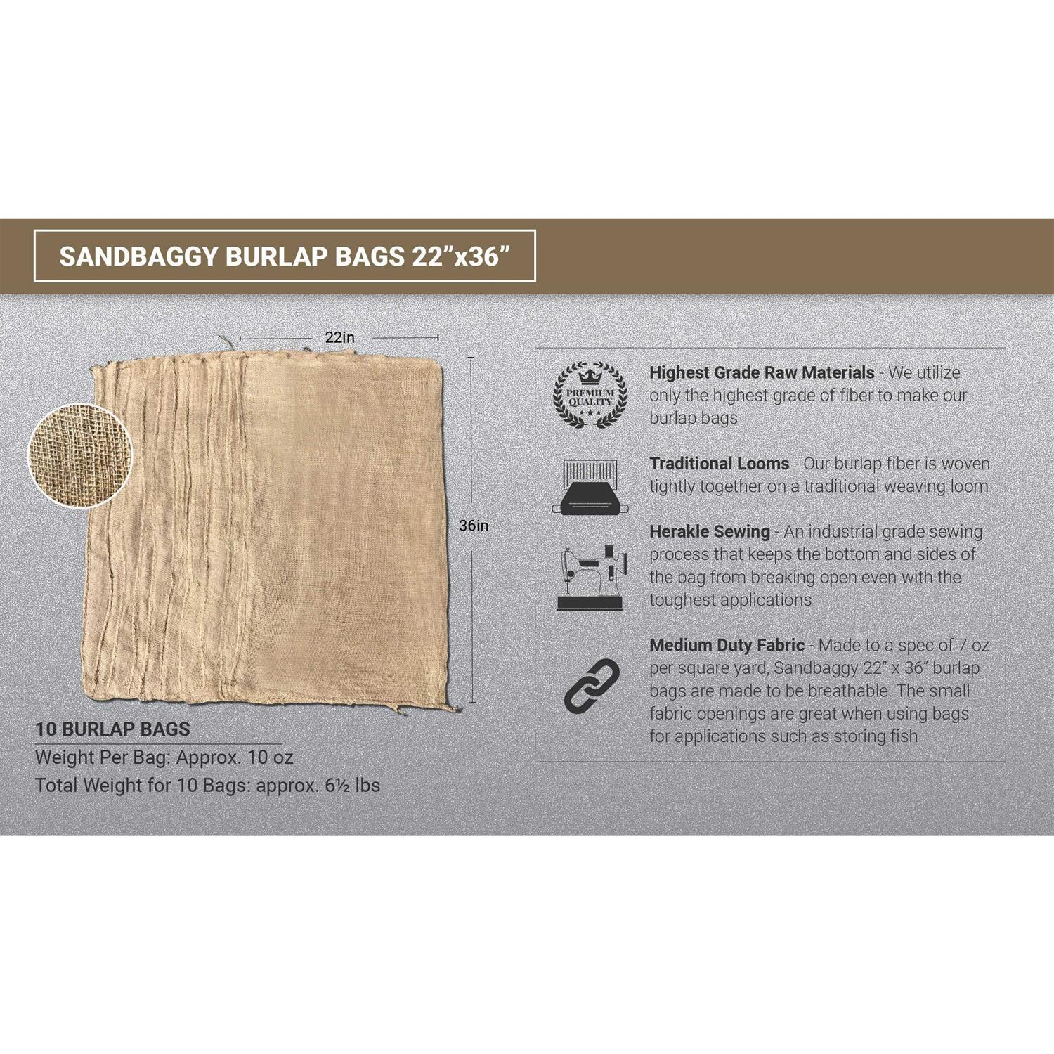 Burlap Bags 22″ x 36″ – Great for Planting/Gardening – Kids Sack Bag – Sacks Burlap by Sandbaggy (Pack of 10)