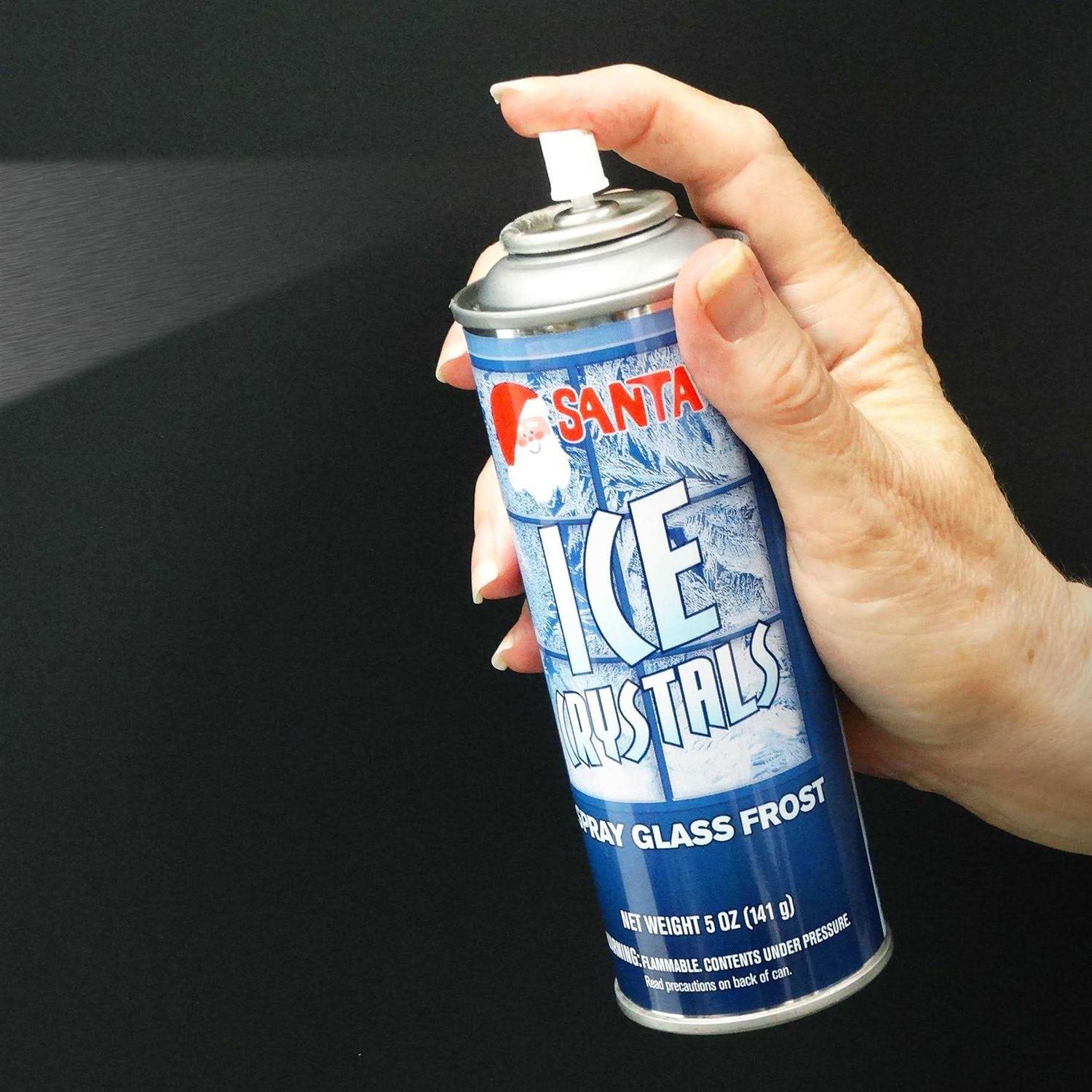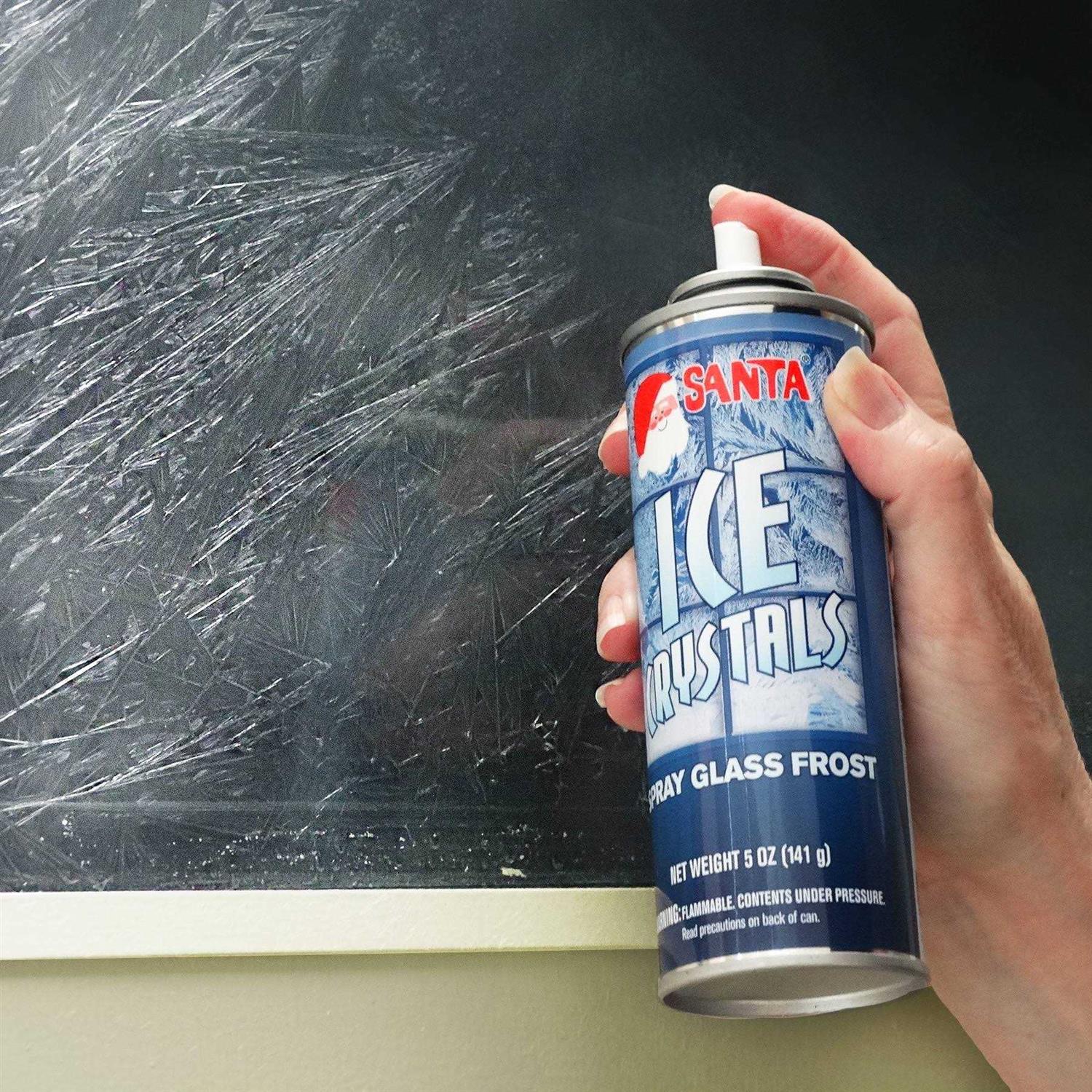 Santa Ice Crystals add a fascinating, decorative Jack Frost effect to glass. Initially clear when sprayed, the spray will crystallize and become translucent as it dries. Wipes off with a cloth and a glass cleaner that contains ammonia or alcohol. Great for decorating windows or mirrors and giving them a crystallized look.