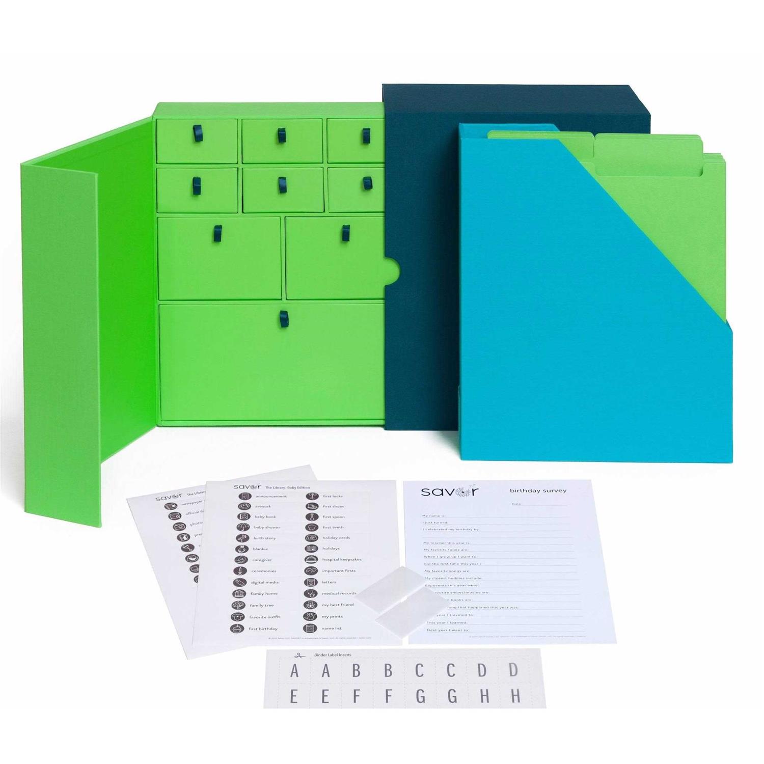 - Includes – 50+ Labels, 9 Drawers, 8 Vertical Files, Initials for Personalization, Envelopes and a Birthday Survey
