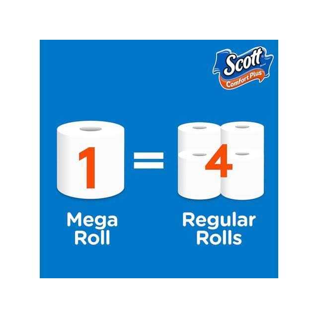 Scott Comfort Plus Bathroom Tissue, Unscented, Mega Roll, One-Ply – 18 rolls