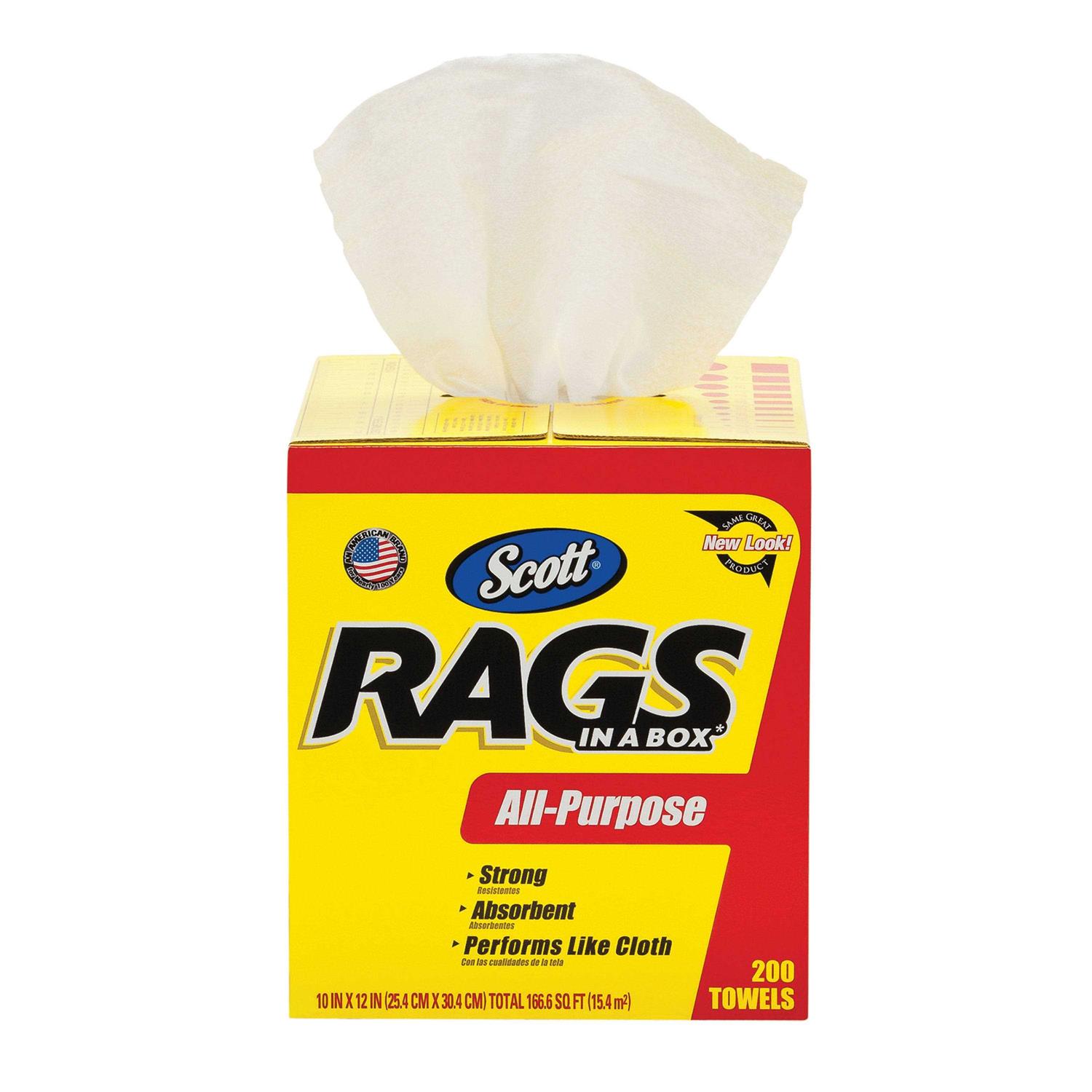 - Each box of Scott Rags in a Box contains 200 white, heavy duty disposable towels, each measuring 25.4cm x 30.5cm