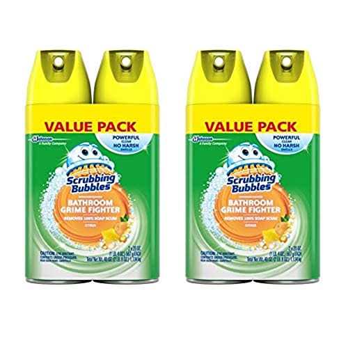 Scrubbing Bubbles Bathroom Grime Fighter Aerosol is a multi-surface bathroom cleaner specially formulated for tough bathroom grime Removes 100% soap scum and smells amazing A fresh scent, available in Citrus and Rainshower, that gives bathrooms a pleasant fragrance Penetrating foam cleans hard to reach places Ideal for tubs, shower walls, vinyl shower curtains, shower doors, sinks, and countertops. Effective on multiple surfaces, including glazed ceramic tile, stainless steel, chrome fixtures, fiberglass, vinyl, glazed porcelain, glass, laminate, Corian, sealed granite and quartz surfaces Scrubbing Bubbles Bathroom Grime Fighter Aerosol is more than just a bathroom cleaner. Its a shower cleaner, tub cleaner, sink cleaner, and more that removes 100% of soap scum and smells amazing, leaving behind a fresh Citrus scent. Dont let grime and scum get the best of your bathroom — fight back with Bathroom Grime Fighter.