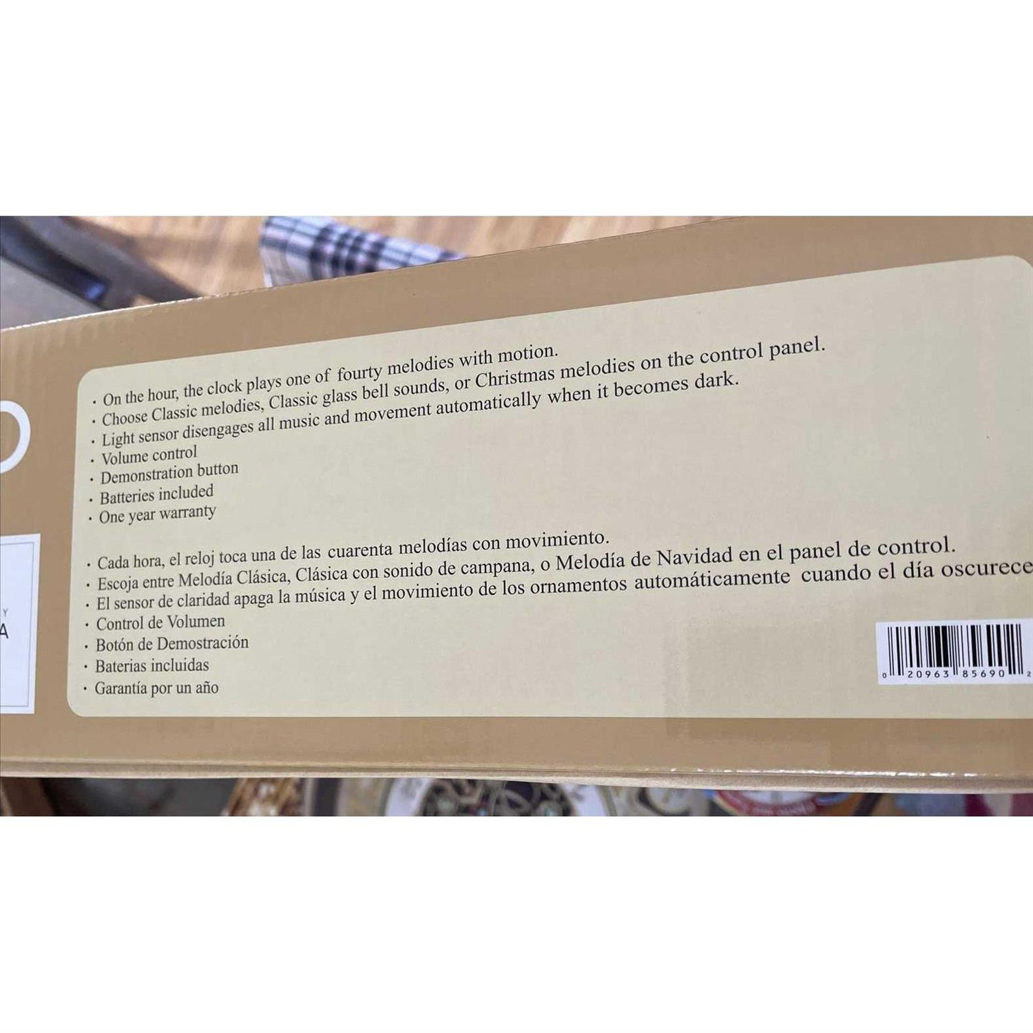 A melody plays on the hour while the center of the clock opens and spins. A strategically placed light sensors ensure that this clock stays quiet in the dark. Truly a timeless treasure.ach year, Members look forward to a new clock design created exclusively for Sam’s Club. This year’s clock features golden pillars and chandeliers. At the top of the hour, the clock’s face splits and rotates while music plays to one of 40 songs. 22 brilliant crystals add impressive detail and charm as the crystal-enhanced pendulum spins. This clock plays 40 classic songs, glass bell tracks or holiday favorites and a sensor disables music when it is dark. The volume control allows you to select just the right sound level.