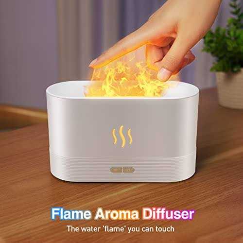 【Upgraded 7 Colors Flame and Water】: The touchable flame, humidifies and brings you retro feelings at the same time, it is very suitable for home office, yoga, gym, it is a beautiful gift for friends, family or loved ones. 【Colorful Light and Fragrance】: 7color options, use our fragrance diffuser, relax, soothe, calm, fully enjoy your life, carefully crafted with high-quality PP material, button electroplating process, use smart LED light combination with flame humidification effect , to create a realistic fire atmosphere. 【Ultra-quiet Automatic Power-off Protection】: Please do not exceed the max Water Line of 180ml, can work for 8 hours, automatic power-off when water is short. 20dB ultra-quiet work, helps to soothe the mood, relieve stress, and improve sleep quality. And, with the help of the built-in smart chip, it will automatically stop working when there is water shortage, which is very safe and reliable. 【Aromatherapy Essential Oil can be Added】: specially designed ultrasonic aromatherapy, after adding water, only one or two drops of aromatherapy essential oil can be added to make the house full of aroma. Relax, soothe and enjoy your life better with our fragrance diffusers 【How to Control】: Press the left button to turn on/off diffuser, press the right button for the 1st time to turn on the yellow light, 2nd press the button to change to 7-color mode, 3rd press the button to keep the color, 4th press the button again to turn off Aroma Diffuser br Capacity:180ml(please not over the max line) br Input: DC5V 2.0A br Dimension: 171x75x101mm br