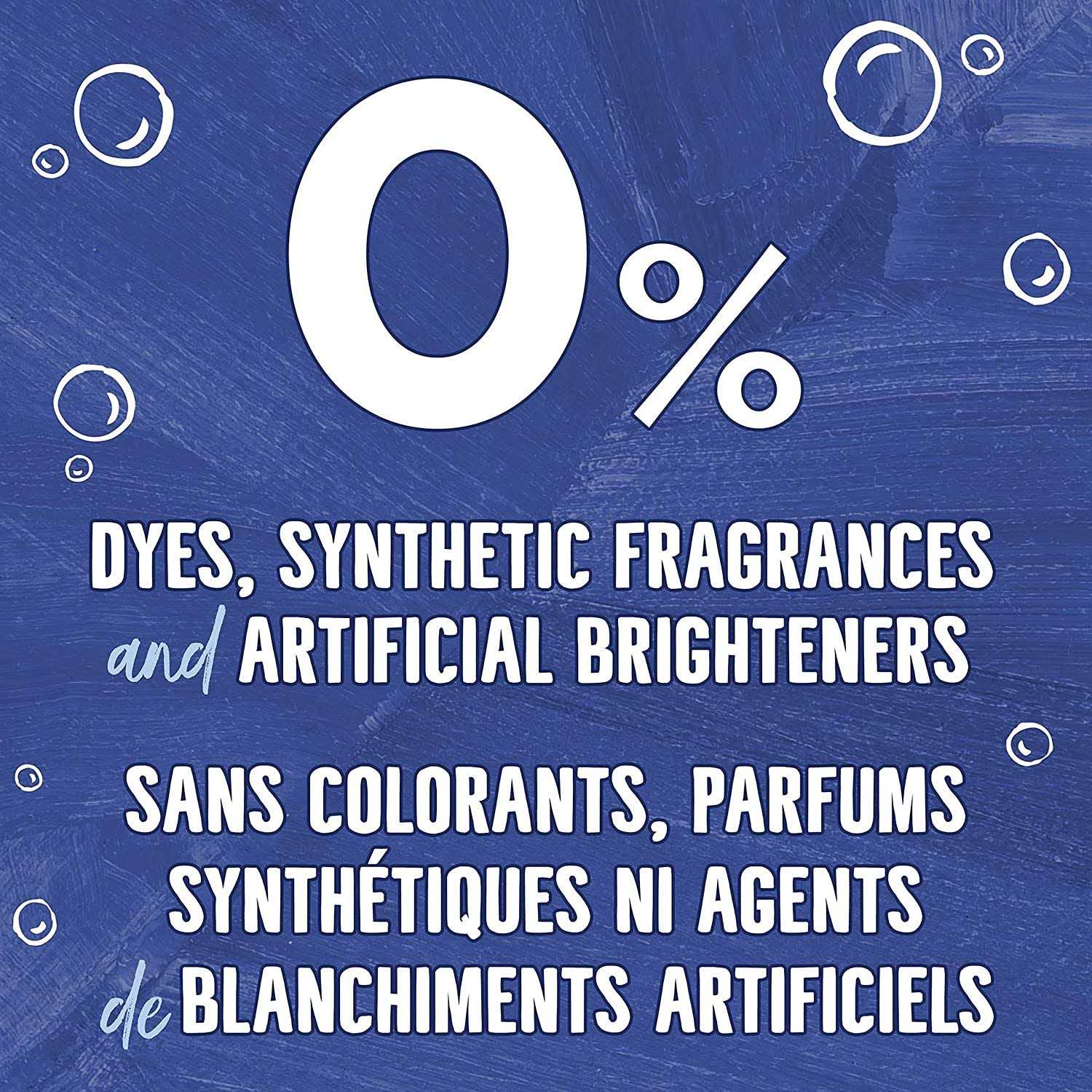 • Liquid laundry detergent that is free of dyes, fragrances and artificial brighteners