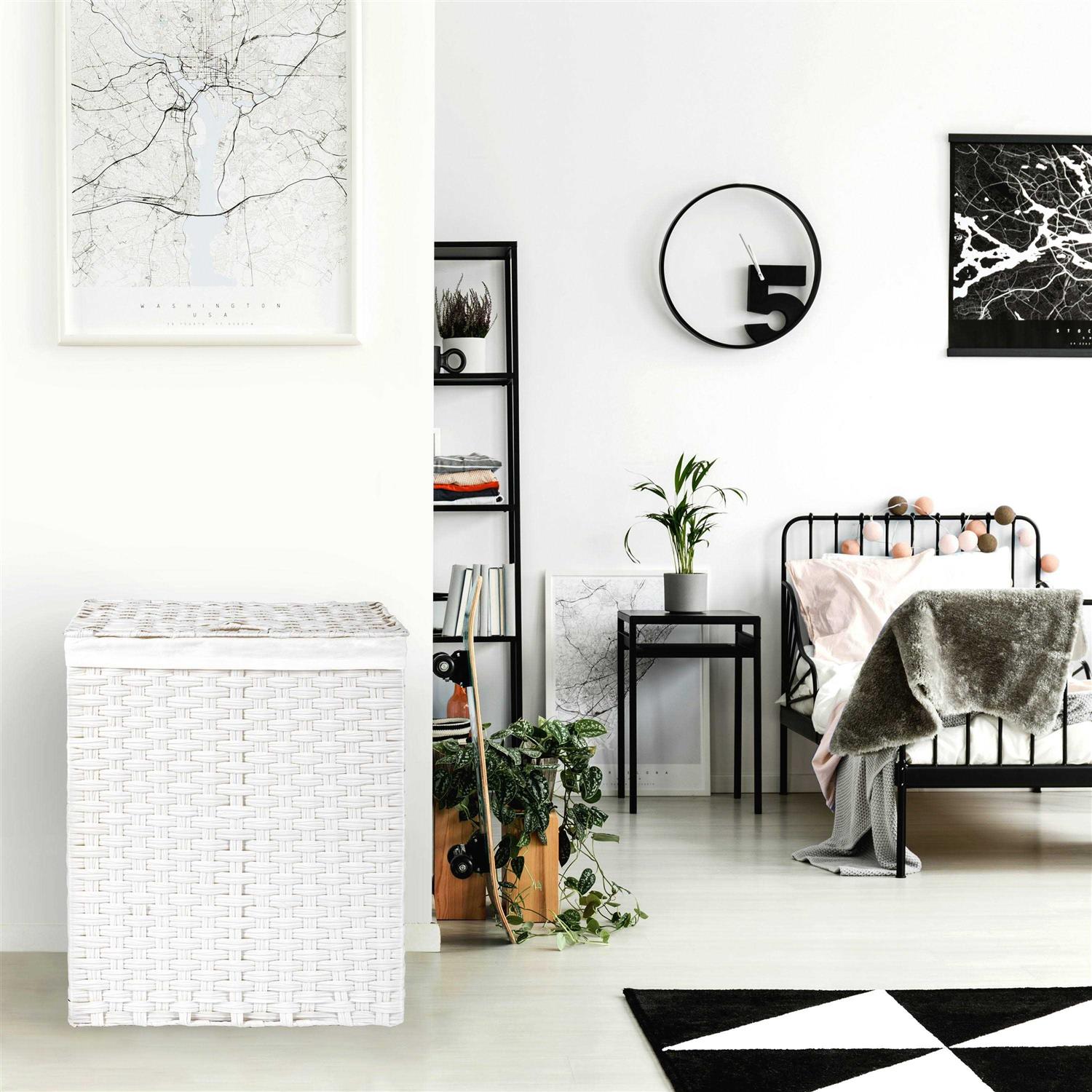 Organize your laundry with this beautiful handwoven lidded portable laundry hamper from seville classics. This hamper includes a thick canvas machine washable laundry bag liner capable of holding up to 3.1 cu. ft. of laundry. The unique light weight design can be easily collapsed and stored away when not in use. Woven from 100% synthetic polyethylene into beautiful, mocha brown resin strips weaved into a faux wicker pattern. Hamper features two cut-out handles on either side for easy lifting and moving. The hinged folding lid keeps smells in and dirty clothes out of sight. Beneath the elegant handwoven water-resistant resin strands is a tough steel frame that provides support for heavy loads while remaining conveniently lightweight. The hamper features a 2. 5 bushels capacity or about 3. 1 cu. ft. No assembly required.