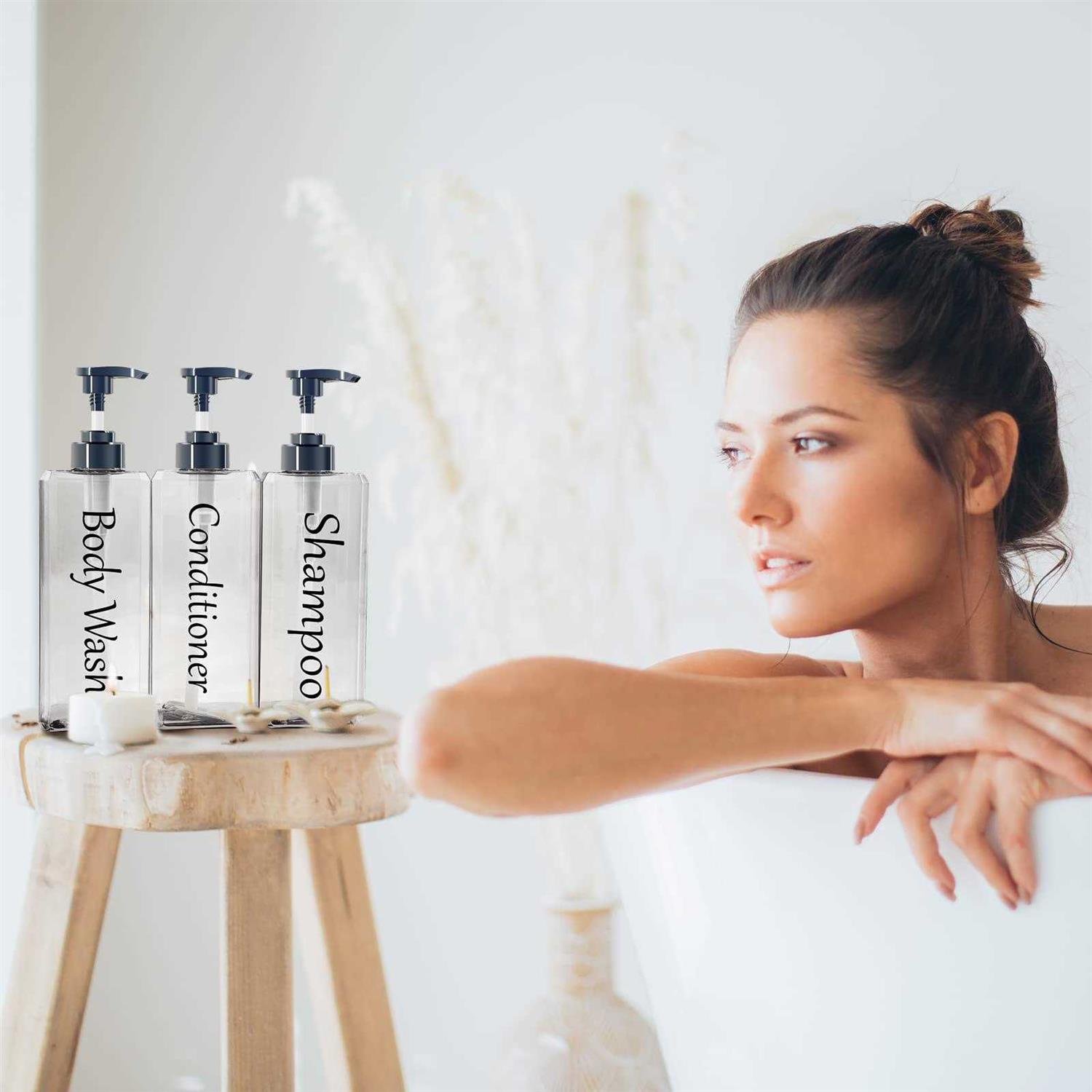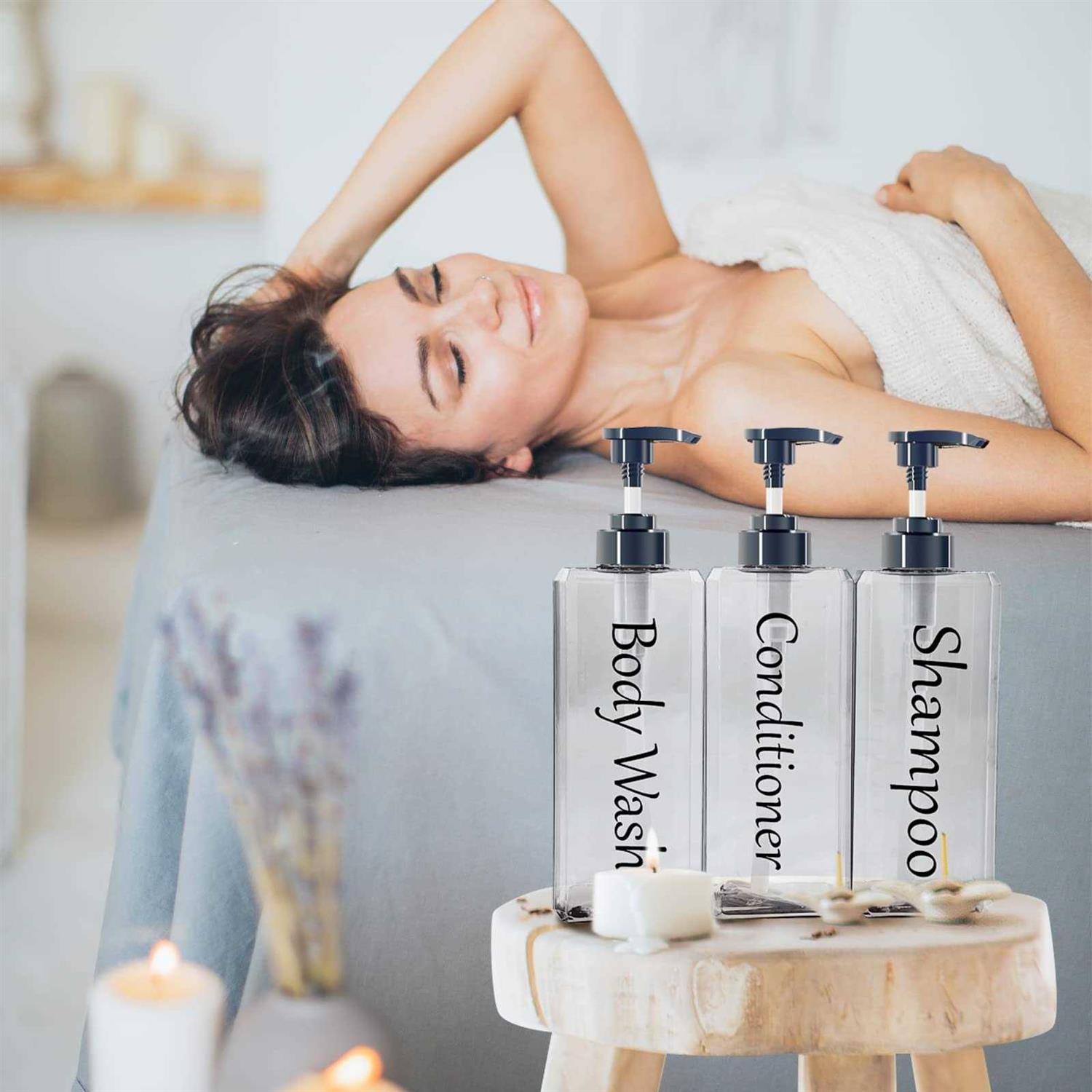 CIRACO Shampoo and Conditioner Dispenser(Clear, Set of 3, 27oz)- Refillable & EmptyShampoo and Conditioner Bottles- Body Wash Dispenser Set-Modern